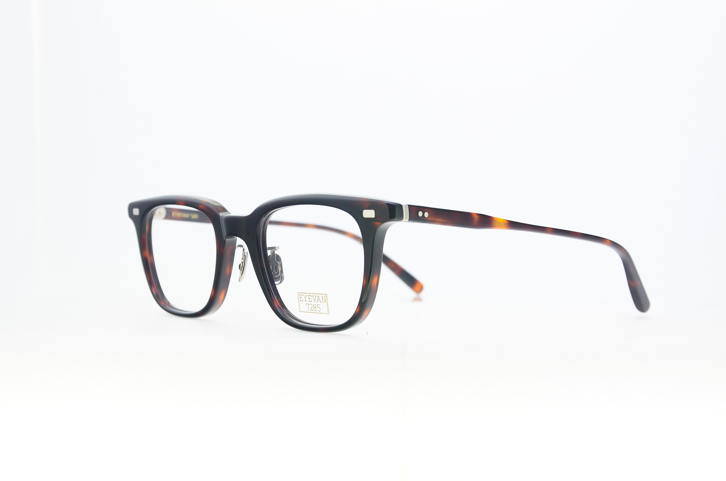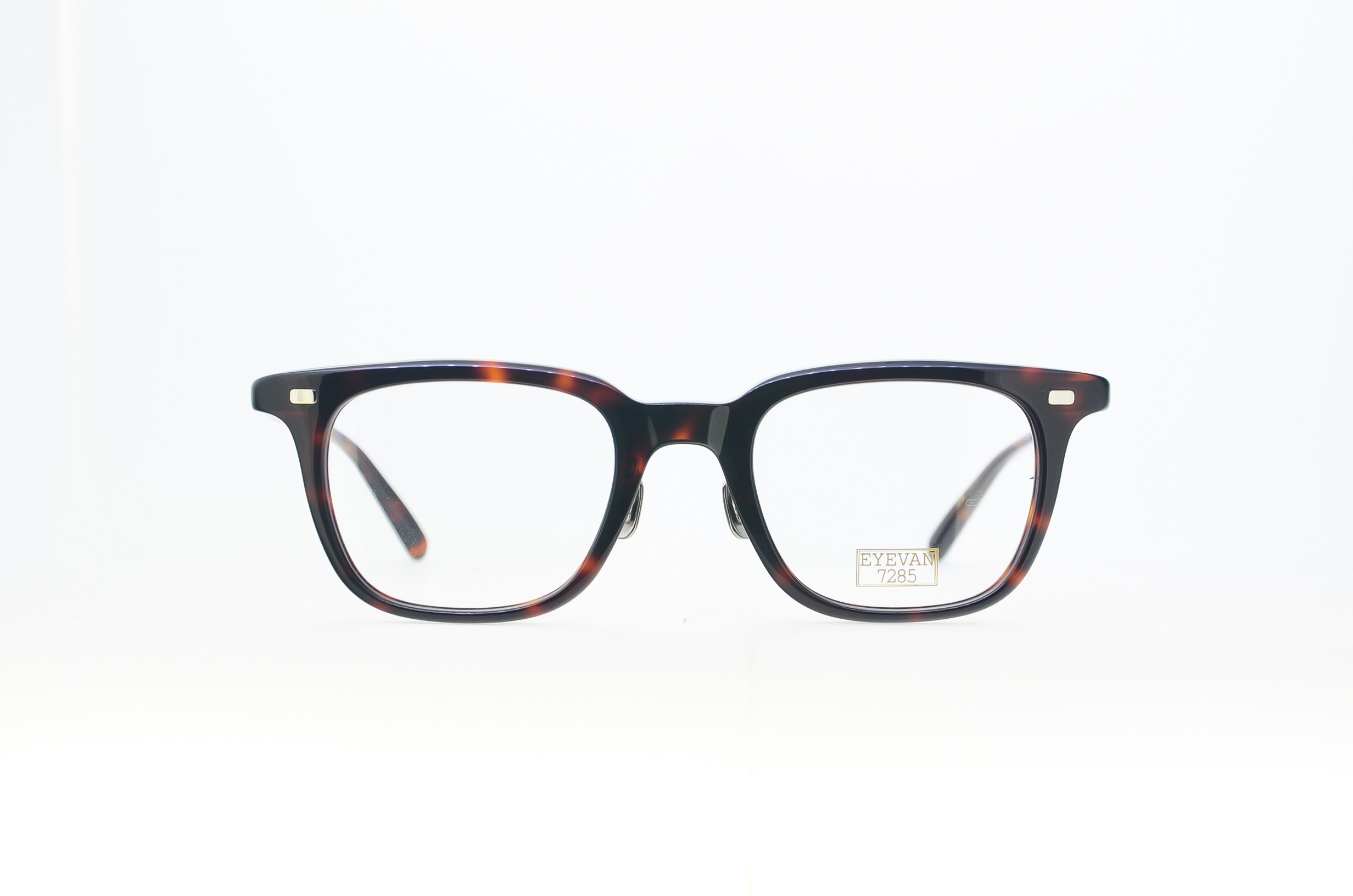 EYEVAN 7285のマスターピースモデル[319]のデザインソースとなった50年代のアメリカンヴィンテージをより忠実に再現したモデル。細い智と相反してブリッジが太いというヴィンテージ特有のアンバランスなデザインが特徴。カシメ飾りは職人が眼鏡一枚ずつ丁寧に研磨する研ぎ出しによる製法。サンプラチナの鋲とプラスチックが一体化し、美しい意匠を創出している。