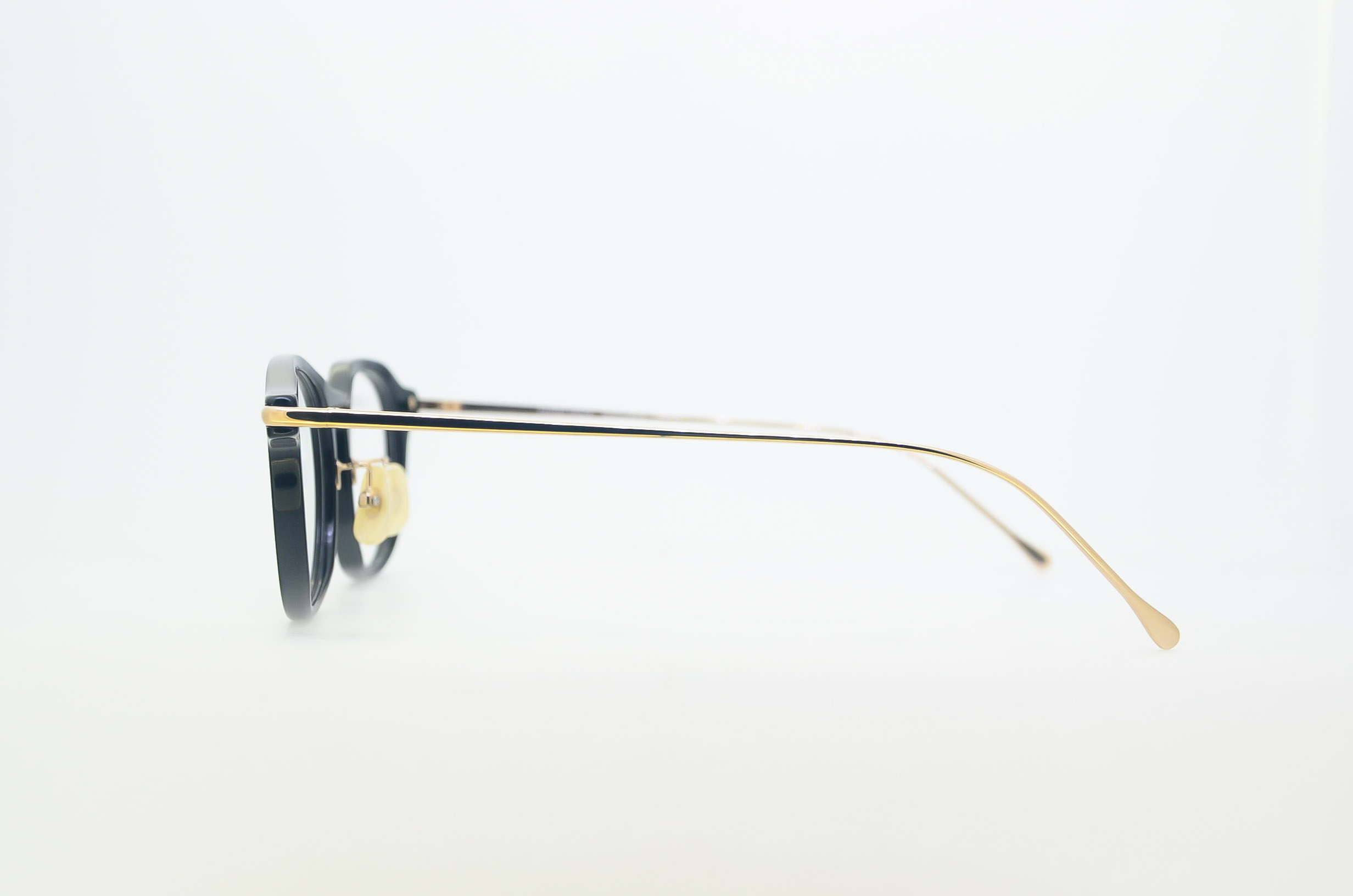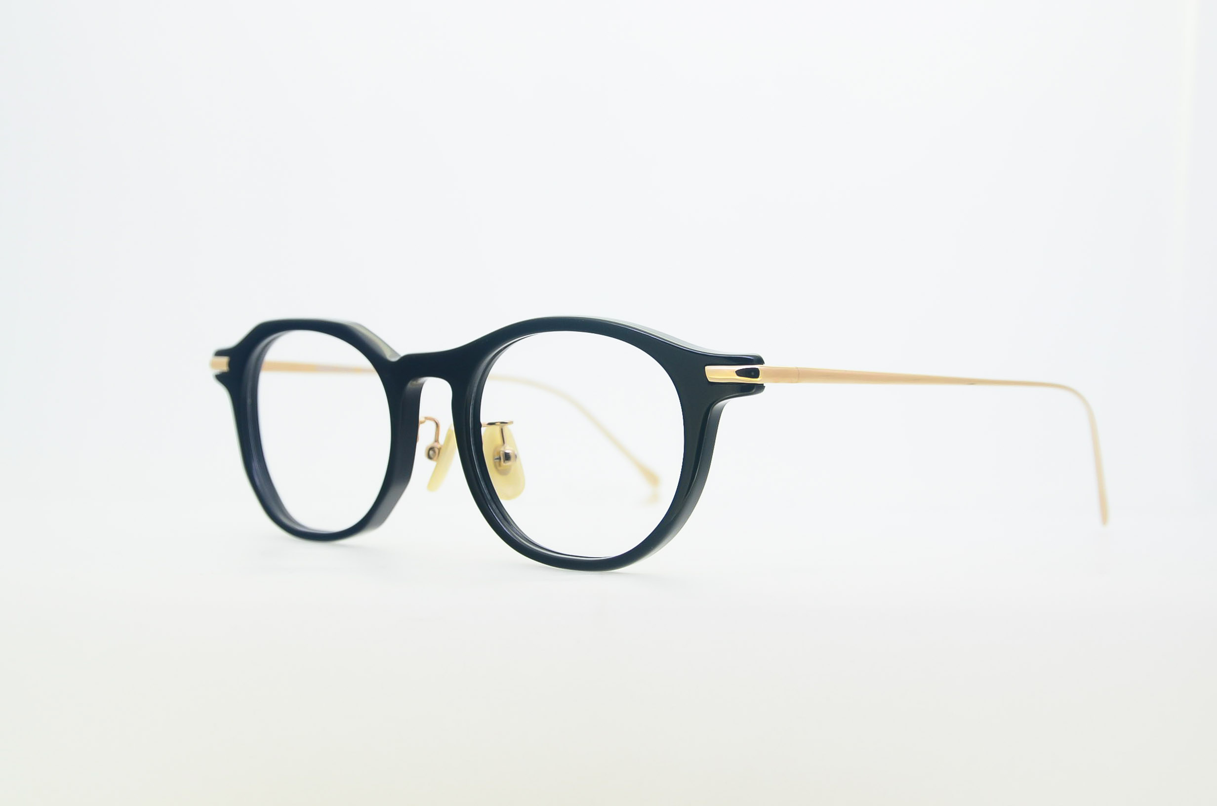 セルロイドとチタンのコンビネーションである『Cel / Ti』シリーズは、職人の磨きによるセルロイド特有の光沢が際立ちます。これまでのアシンメトリーコレクションに比べて細やかな線で構成されており、ブランドのテーマである「程よい違和感」をライトなバランスで愉しんでいただけます。ガイナンドという名前は、雌雄モザイク[gynandromorph]から引用。昆虫などの雄雌の遺伝子が混在して、体の半分が雄、半分が雌といった表れ方を指します。 こちらのモデルは左がウェリントン、右がオクタゴンでありながらレンズシェイプは左右対称で、程よく馴染み、着用時のインパクトを抑えています。