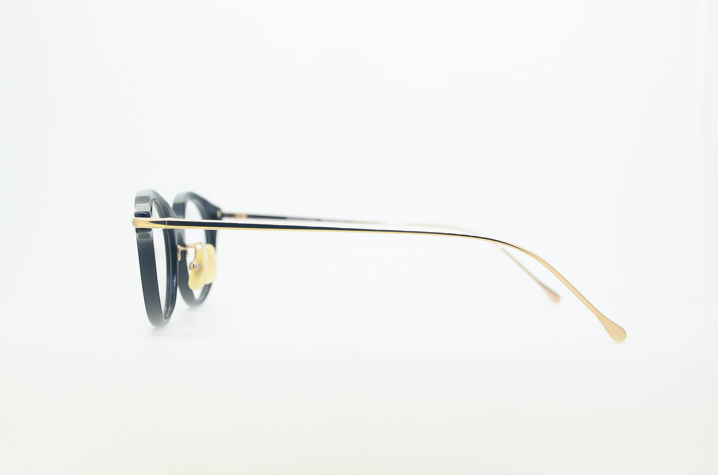 セルロイドとチタンのコンビネーションである『Cel / Ti』シリーズは、職人の磨きによるセルロイド特有の光沢が際立ちます。これまでのアシンメトリーコレクションに比べて細やかな線で構成されており、ブランドのテーマである「程よい違和感」をライトなバランスで愉しんでいただけます。カラクサは唐草模様をモチーフにしたモデルです。デザインの各所に異なる曲線を組み合わせることで、つるが絡み合う様子を表現しております。ややフォックス(吊り目)シェイプにデザインすることで目元を引き締め、印象的な表情を生み出します。元来、唐草模様はつる植物の生命力を発展に結び付けて日用品などに使用されることが多いとされています。カラクサも過度なインパクトは抑え、程よく日常に溶け込むアイウェアを目指してデザインしております。