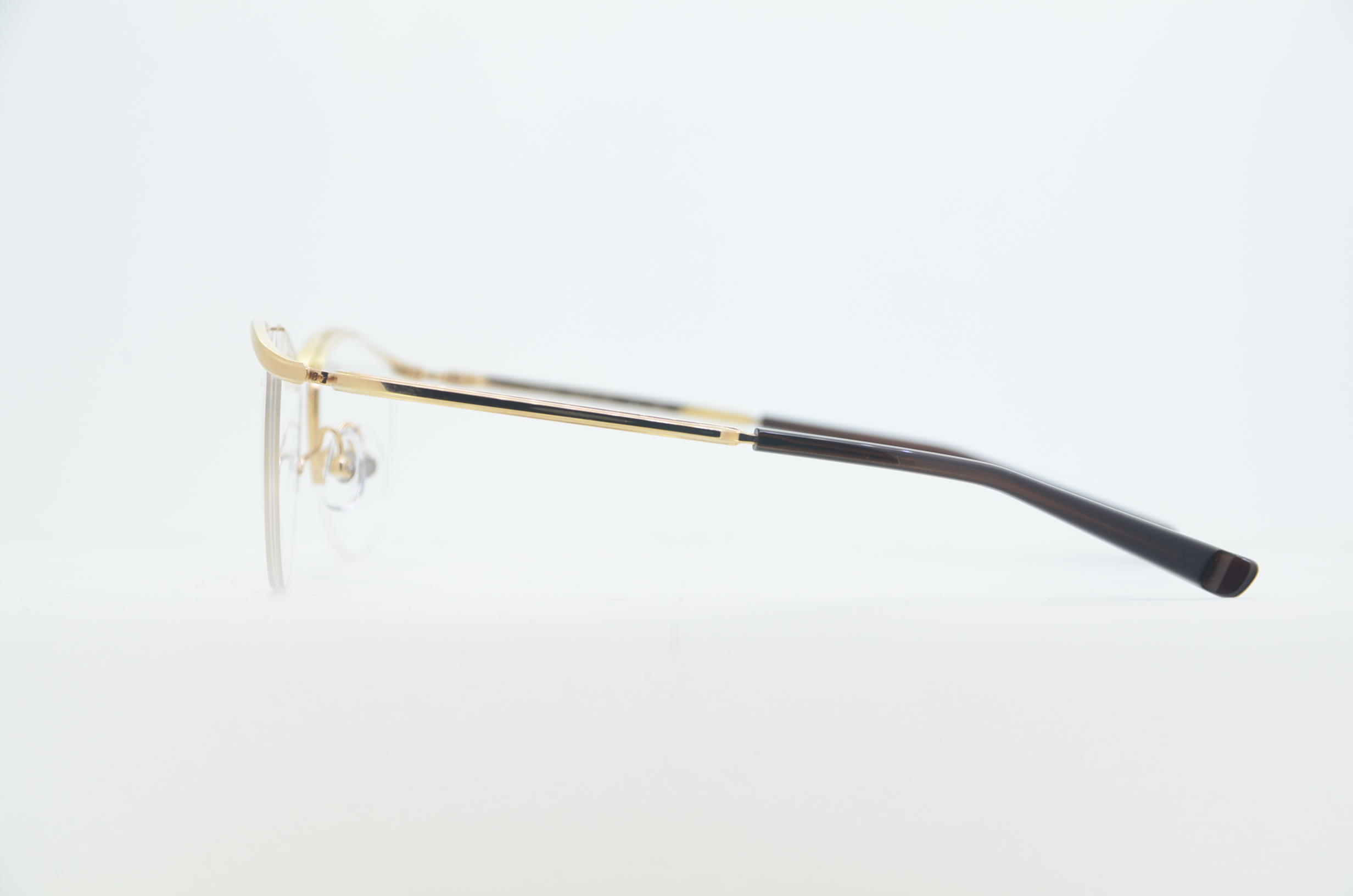 『S-845Tシリーズ』は、999.9のメタルブロウの原点を感じさせるシリーズ。眼鏡に求められる機能性にこだわり、フォーナインズのテクニカルな要素が凝縮されたメタルブロウフレームです。これまで積み上げてきた技術を駆使することで、S-15TシリーズやS-206Tシリーズを彷彿させる繊細なメタルブロウの表情をデザインしながら機能面を昇華。シンプルなスタイルながら、フォーナインズ・クオリティの進化が感じられるフレームに仕上がっています。