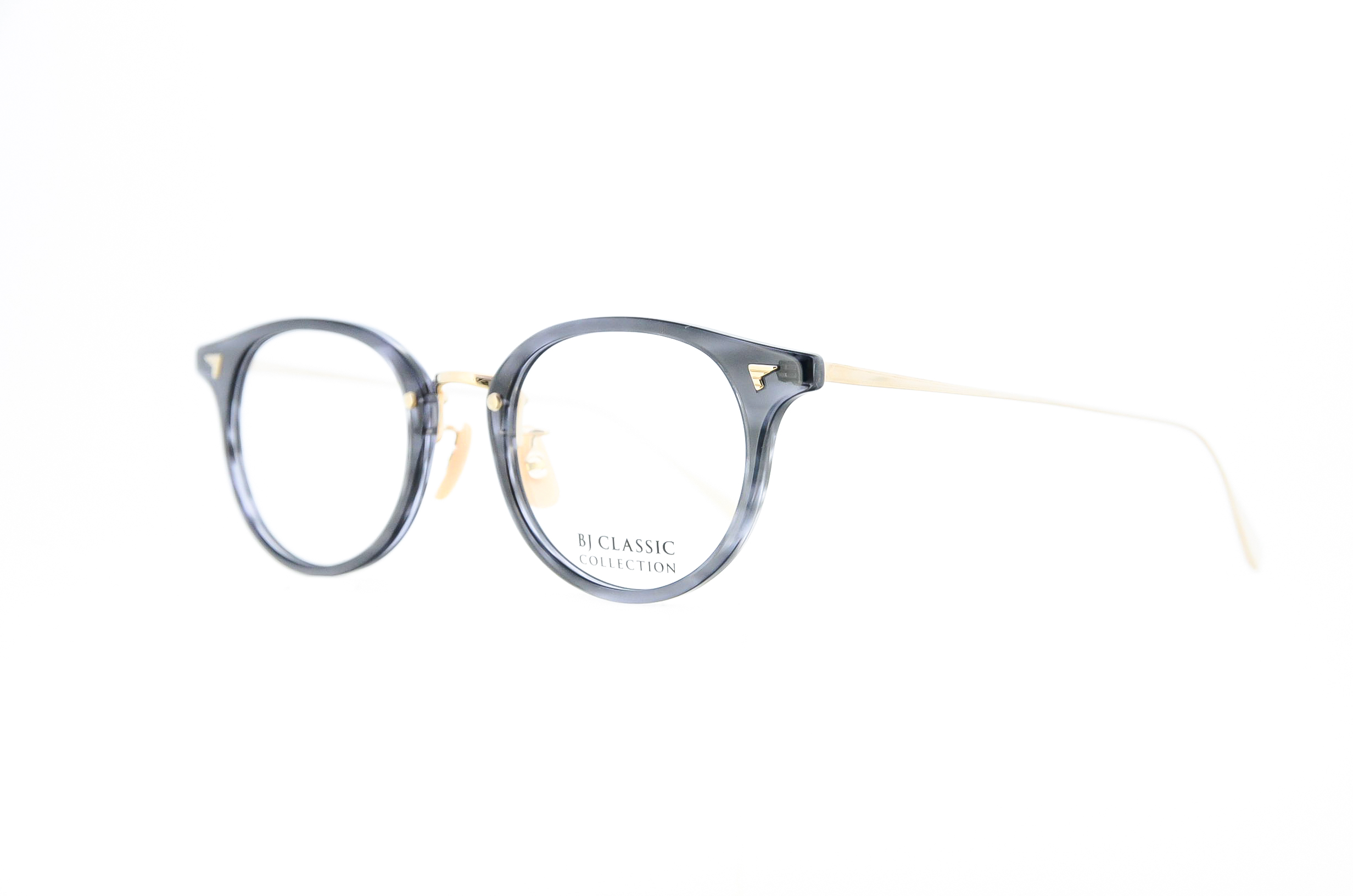 METAL(メタル)と、PLASTIC(プラ)を融合させたコンビネーションタイプのクラシック眼鏡です。中でもフロントがプラで、テンプルとブリッジがメタルタイプは、BJ CLASSIC COLLECTIONの代表作となりました。「Titanium(チタン)」は、金属アレルギーやサビが出にくく、軽くしなやかなバネ性と強度を保ち、柔軟なフィッティング調整が可能な素材です。