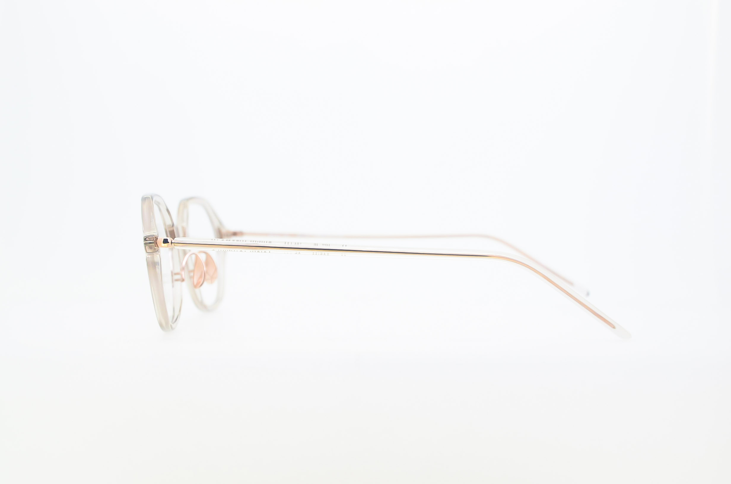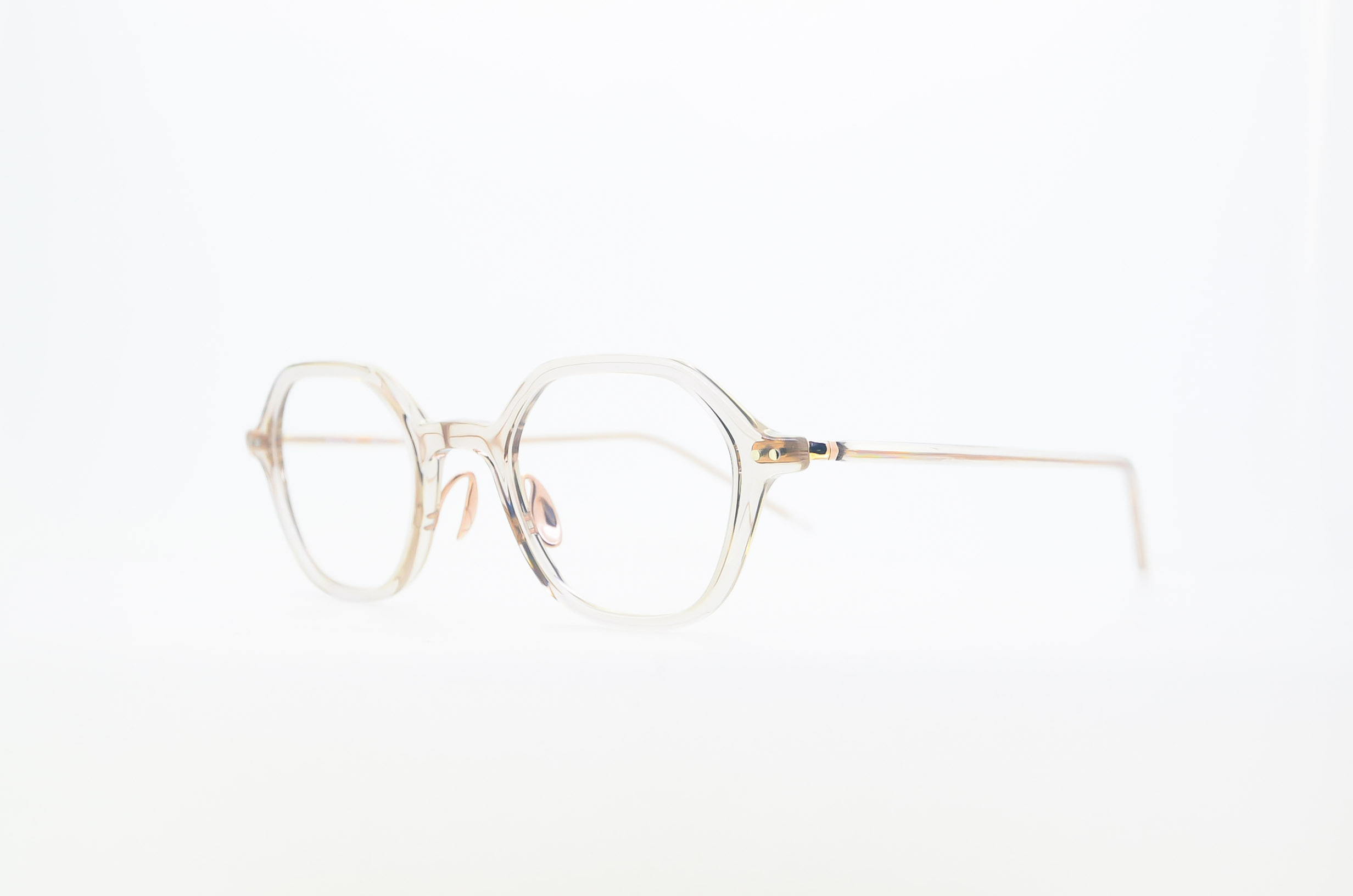 デザイナの外山雄一氏は、アイデアソース、ドローイング、デザインといった膨大な数のドキュメントを、「D」と名付けたファルダに格納しています。デザインチームは「D」を共有、継承し、時代のエッセンスを加味しながら、外山氏が掲げる「5ルーティン」(見る、考える、描く、作る、壊す)のもとにアイウエアを提案。こちらのモデルは、『井桁』家紋を源流としたヘキサゴンシェイプです。