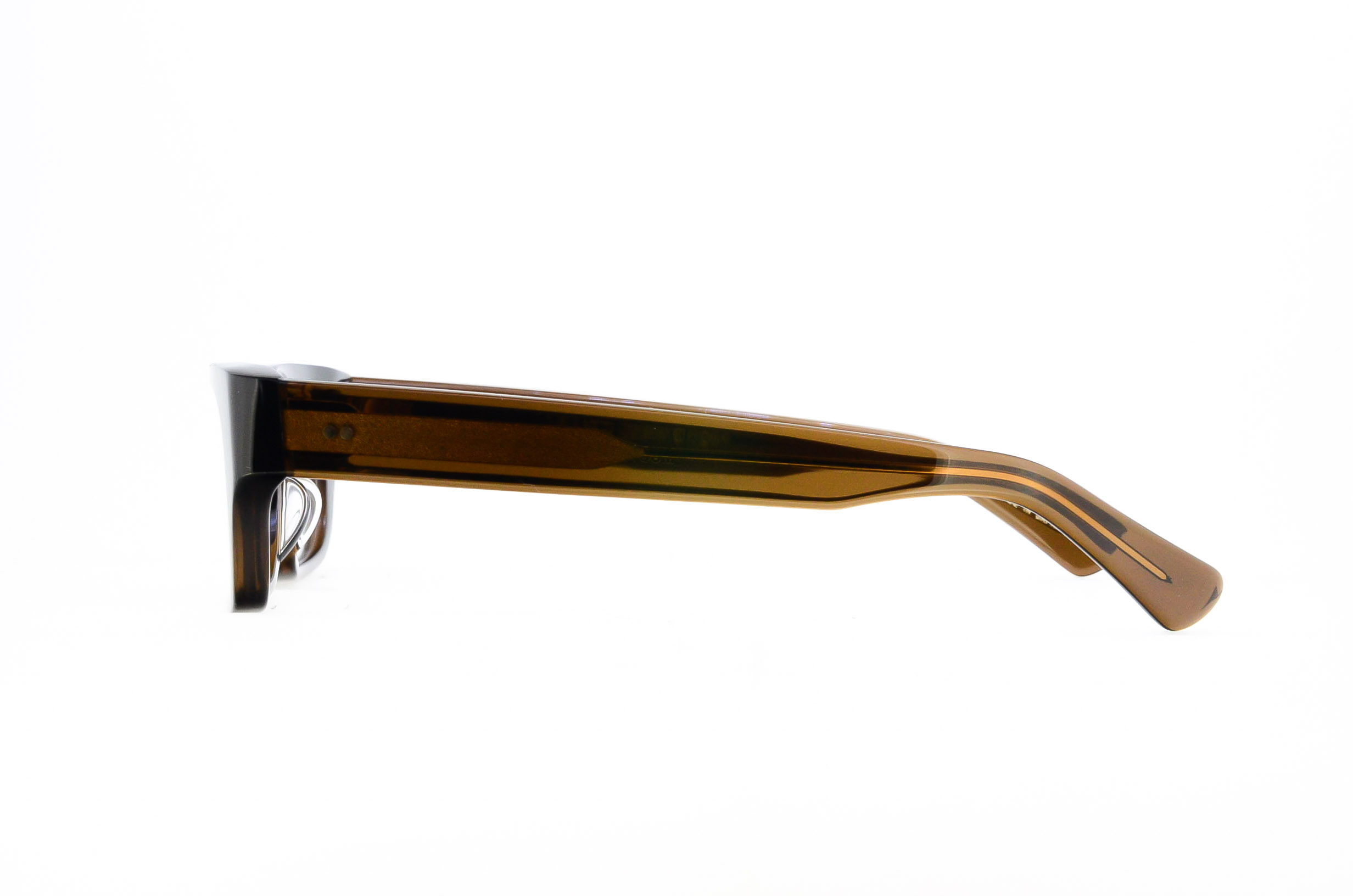 スクエアシェイプのフレームを丹念に磨き上げ、丸みの利いたフレームに仕上がっているのが【MUST】です。程良く肉厚のフレームのため程よい賭けごたえがあり、フレームの角を落としたデザインが柔らかな印象を生み出しています。8mmの生地厚が重厚さを残しながらも、たて幅を抑えたくせの少ないデザインが、ビジネスシーンでも十分合わせやすいシンプルなものになっています。エッジの利いたモデルが多いゴールドスミスの中ではベーシックといえるモデルです。