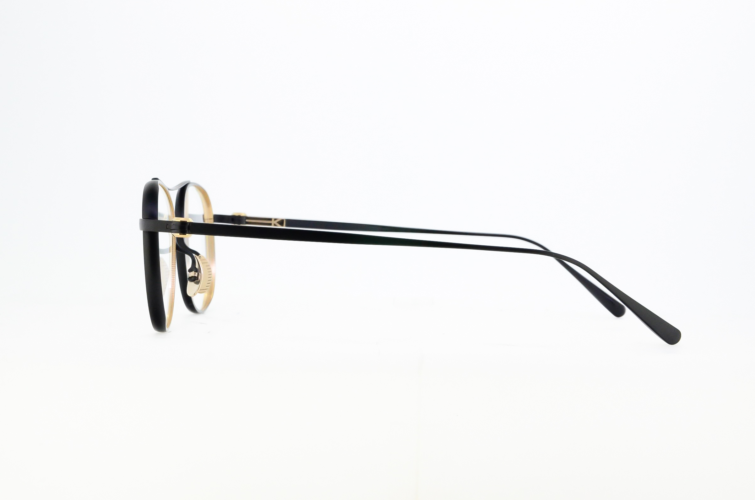 今回のテーマである『 INSIDE OUT 』は通常表面に施される装飾的な模様を『 裏返し 』にするようにリム、ヨロイ、テンプルの裏面に施した。模様がなくソリッドになった表面は、絶妙な甲丸感を持たせチタンの素材感を表現している。モダンエンドの裏面に施された模様は単なる装飾ではなく滑り止めの機能を併せ持っている。