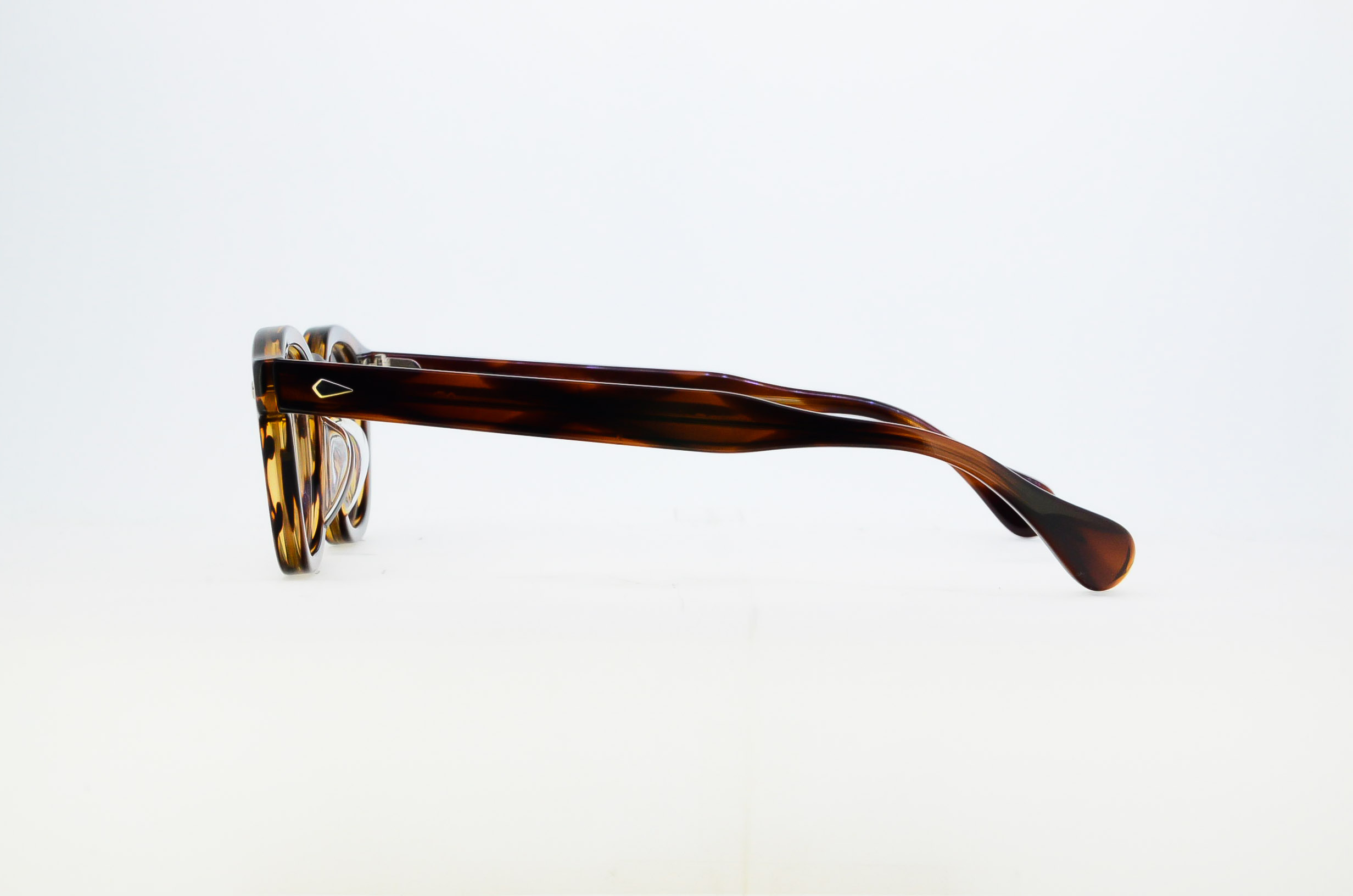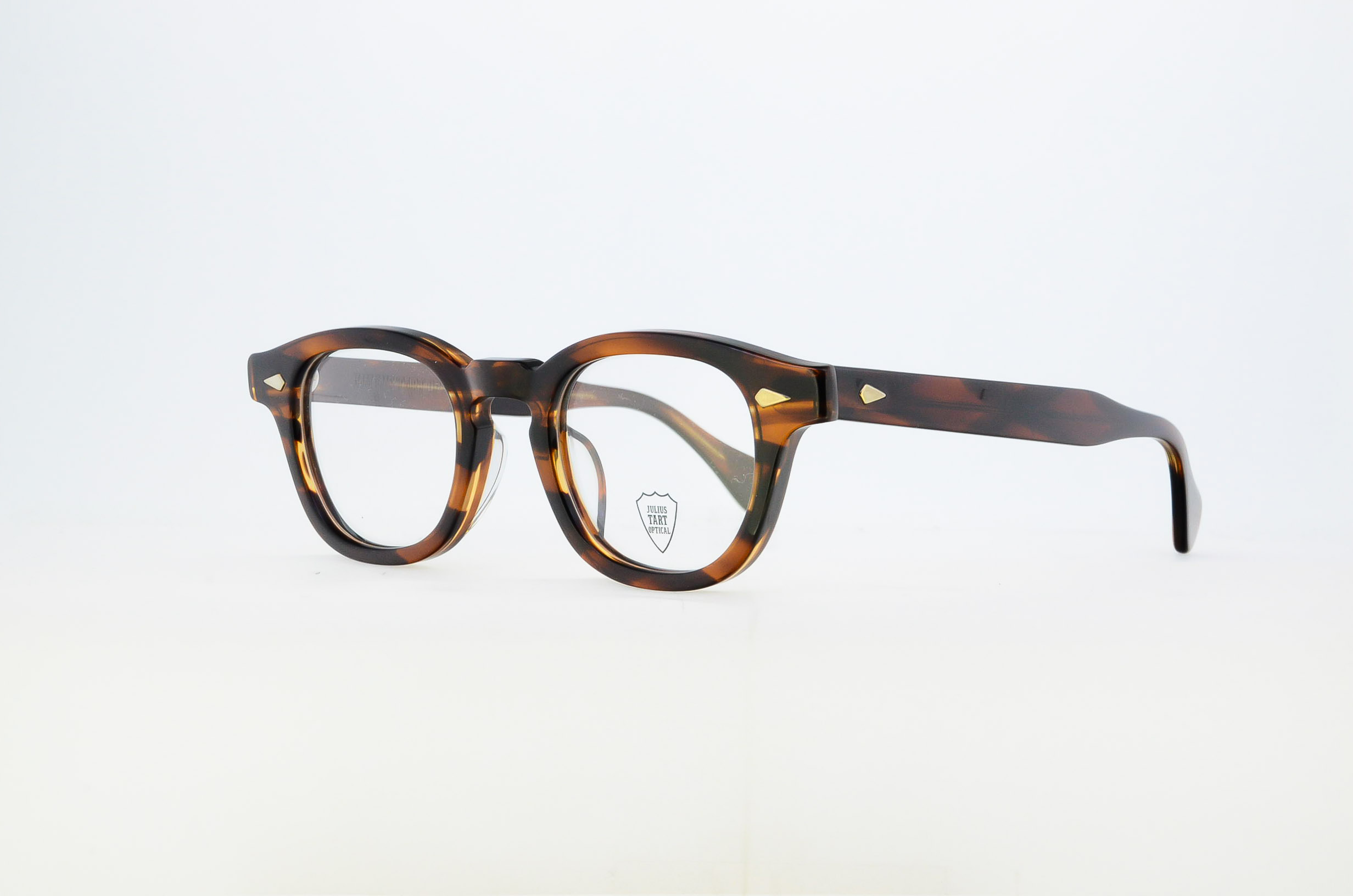 ヴィンテージ眼鏡で世界的に知名度の高いモデルと言えるTART OPTICAL社製の『ARNEL(アーネル)』を50~60年代の資料を元に忠実に復元した『AR(エーアール)』。 定番のブラックやブラウン系などレトロでクラッシックなカラー展開も魅力。ジョニー・デップなど海外の人気映画俳優が着用している事でも有名なモデルです。