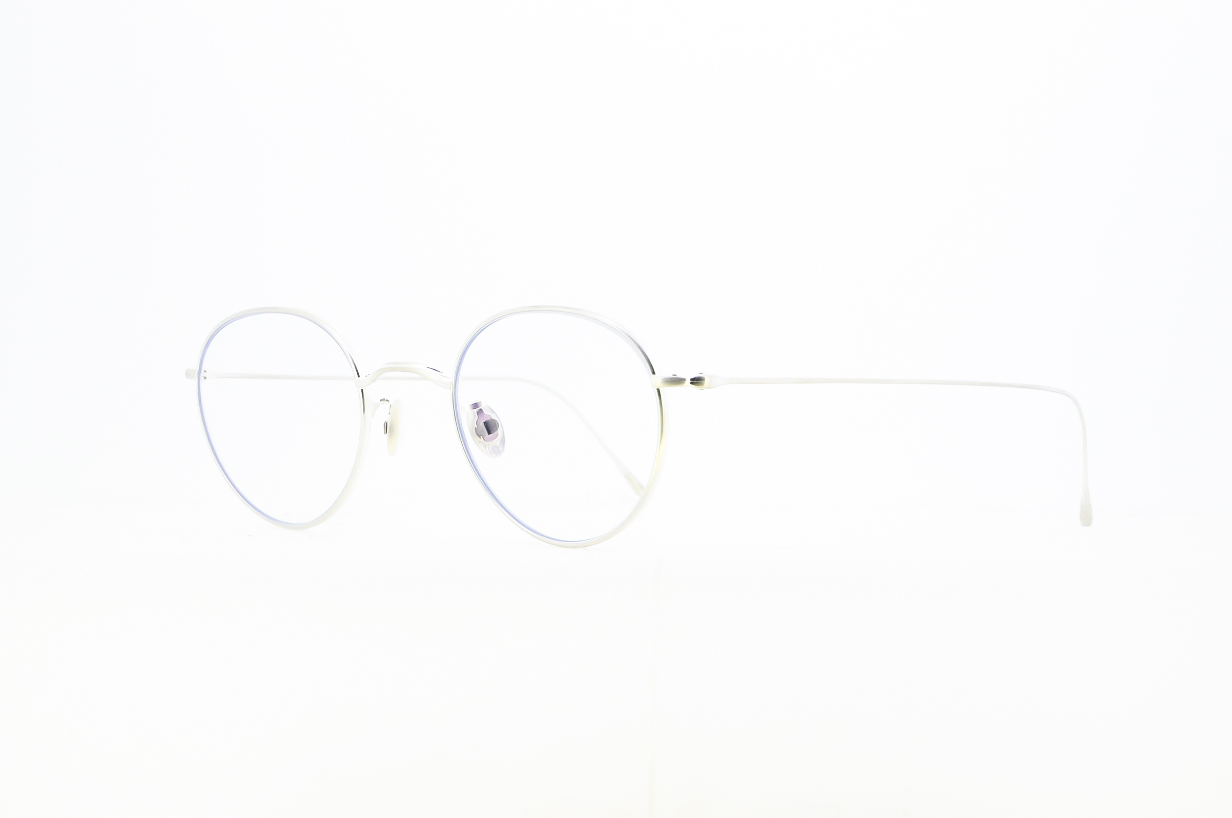 「10 アイヴァン」の“STANDARD”シリーズは、チタン製の繊細なリム線、真珠貝製のパッドやトルクスネジなど、オリジナルの上質なパーツの美しさが際立つシンプルなオールメタル。今回の新コレクションでは、そこに表面処理加工として“FAT PLATING”、つまり厚メッキを採用した。ゴールドとシルバーを展開するが、中でもシルバーは極めて限られた日本の工場でしか生産することができない、純銀の厚メッキが施されているのが特筆すべき点だ。