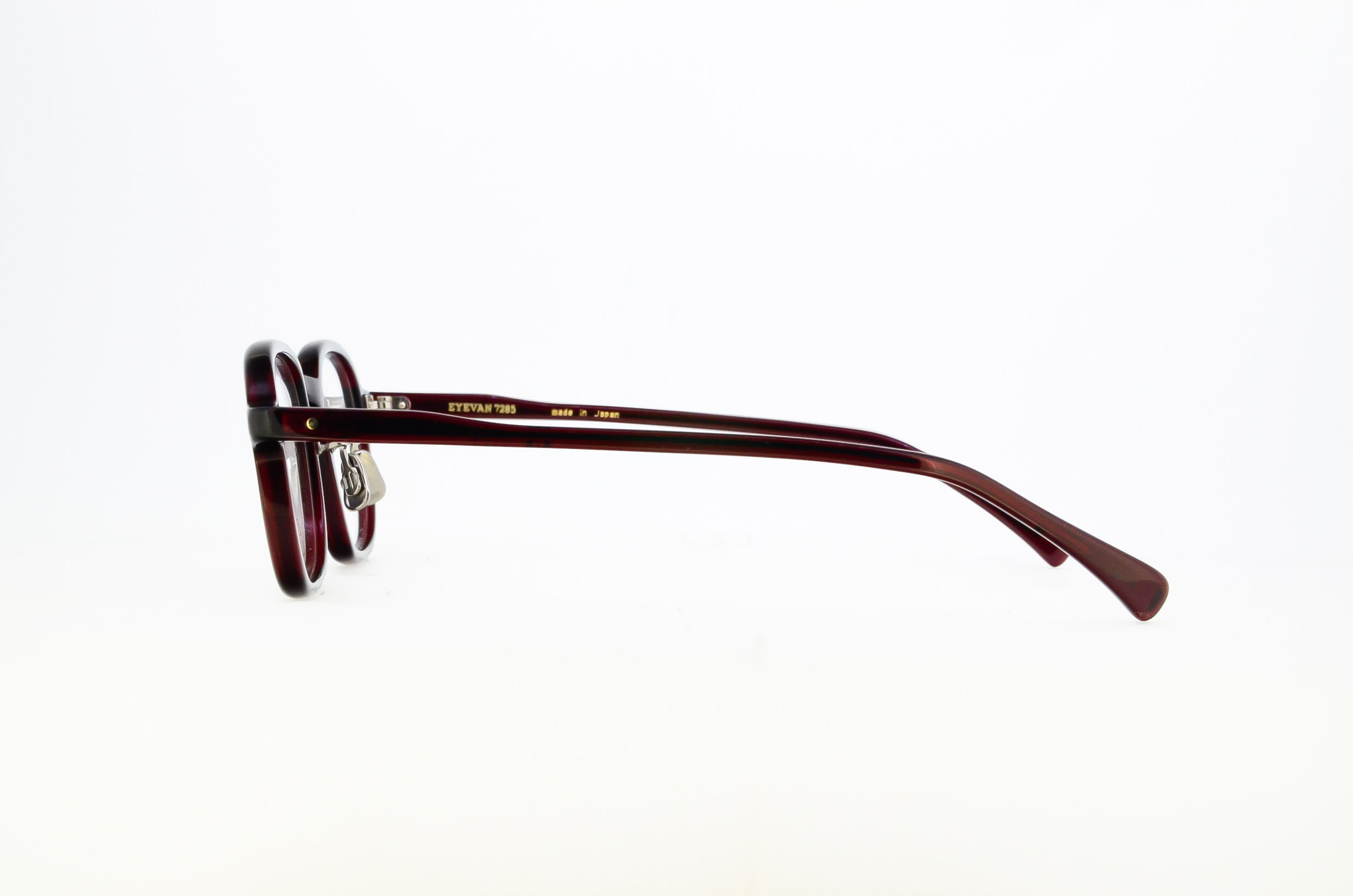 25SSでリリースした「365」型芯張りテンプルを採用したモデル。やや下がった智と柔らかい線で構成された温かみのあるスクエア シェイプは工場で使用する“カニメ”という呼称の治具に形が近いことから蟹目型と呼ばれている。合口部に向けて膨らんだ形状を有したテンプルは50年代のフレンチヴィンテージからサンプリングしたもの。華美なテンプル芯を見せることを目的とした芯張りではなく、シューティングでは作れない特徴的なテンプルのアウトラインを具現化する手段としてこの製法を用いた。ブランドのシグネチャーとなる埋め込み丁番1PINカシメ構造はK10のリベットを採用。執拗なまでのこだわりや創作思考を基調としながらも完成像は極めて静かな存在感に収めている。