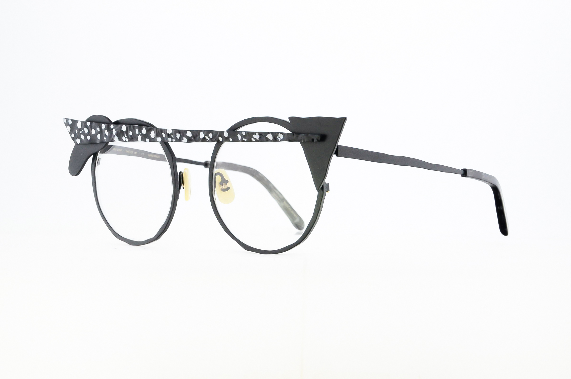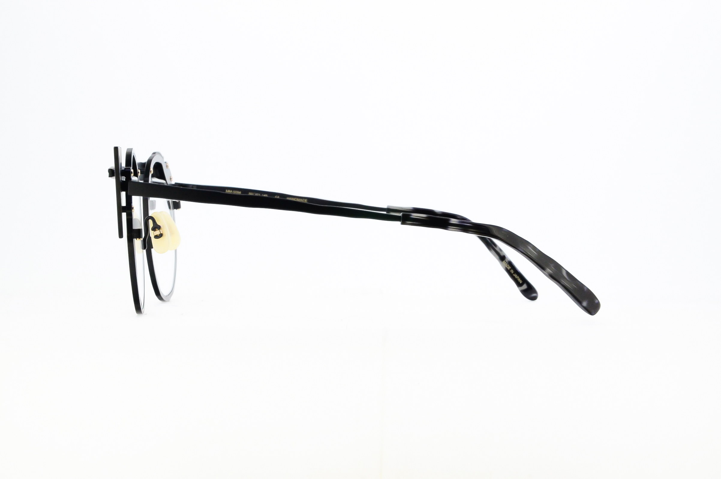 立体的な積み重なり。一つひとつのパーツを積み重ねる実験的なデザイン。ヨロイやブリッジを積み木の様に自由に置いてみる。それが構造となりメガネを作り出しています。色や素材感の違うパーツが組み合わさることで、複雑な色彩とだまし絵のような錯覚を生み出します。