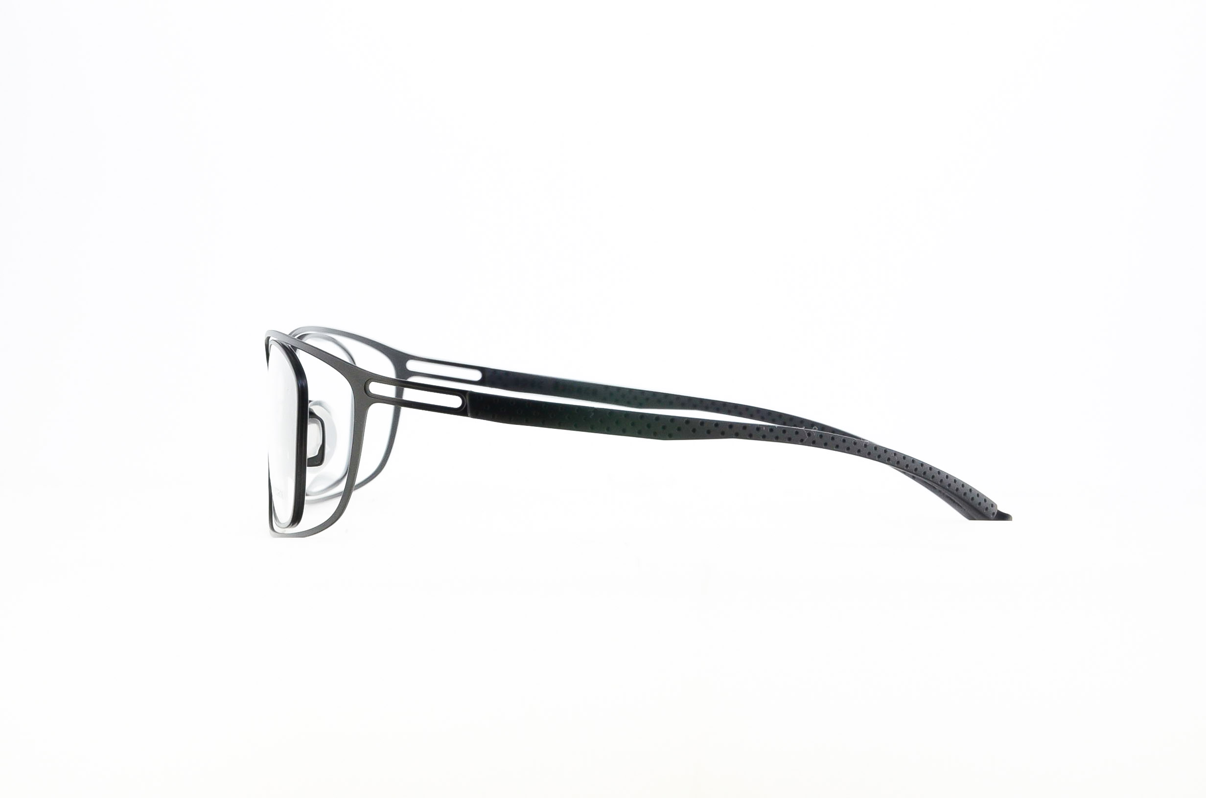 シート状のチタンで構成されたヒンジレスフレーム。スポーティな雰囲気のある、横長のスクエア型レンズシェイプ。アクティブな動きでも安定した装着性があり、スポーツなどの使用にも適しています。偏光レンズにも対応可能な構造になっています。(ES-6093 リニューアルモデル)
