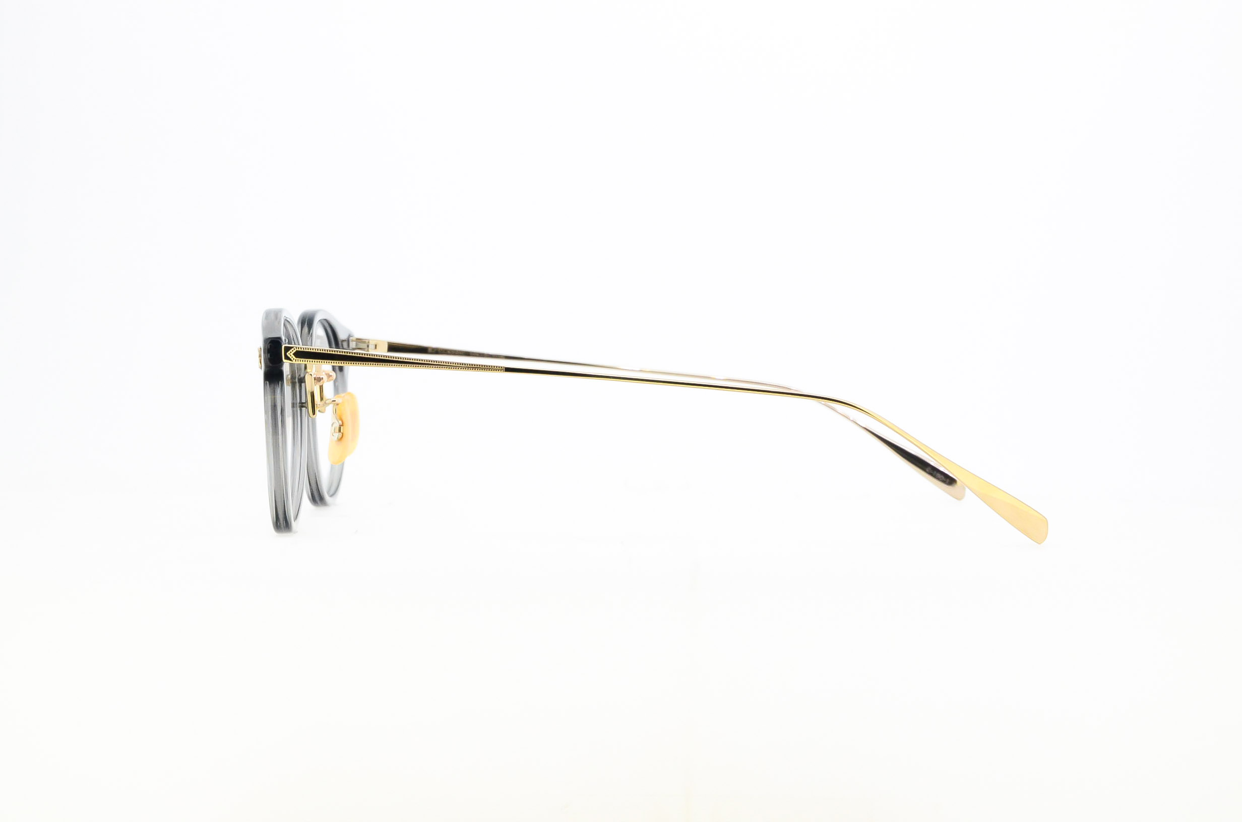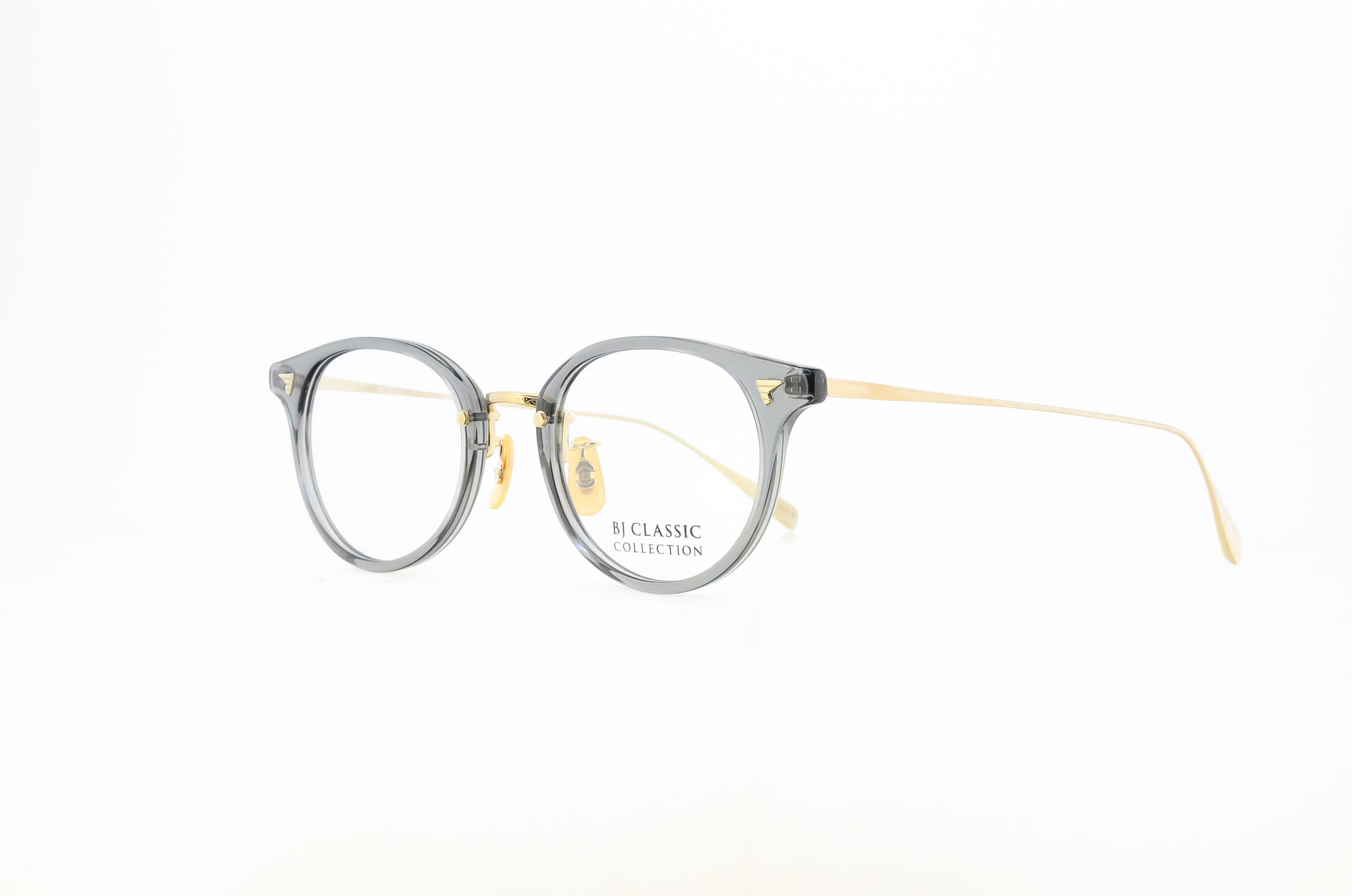 METAL(メタル)と、PLASTIC(プラ)を融合させたコンビネーションタイプのクラシック眼鏡です。中でもフロントがプラで、テンプルとブリッジがメタルタイプは、BJ CLASSIC COLLECTIONの代表作となりました。「Titanium(チタン)」は、金属アレルギーやサビが出にくく、軽くしなやかなバネ性と強度を保ち、柔軟なフィッティング調整が可能な素材です。