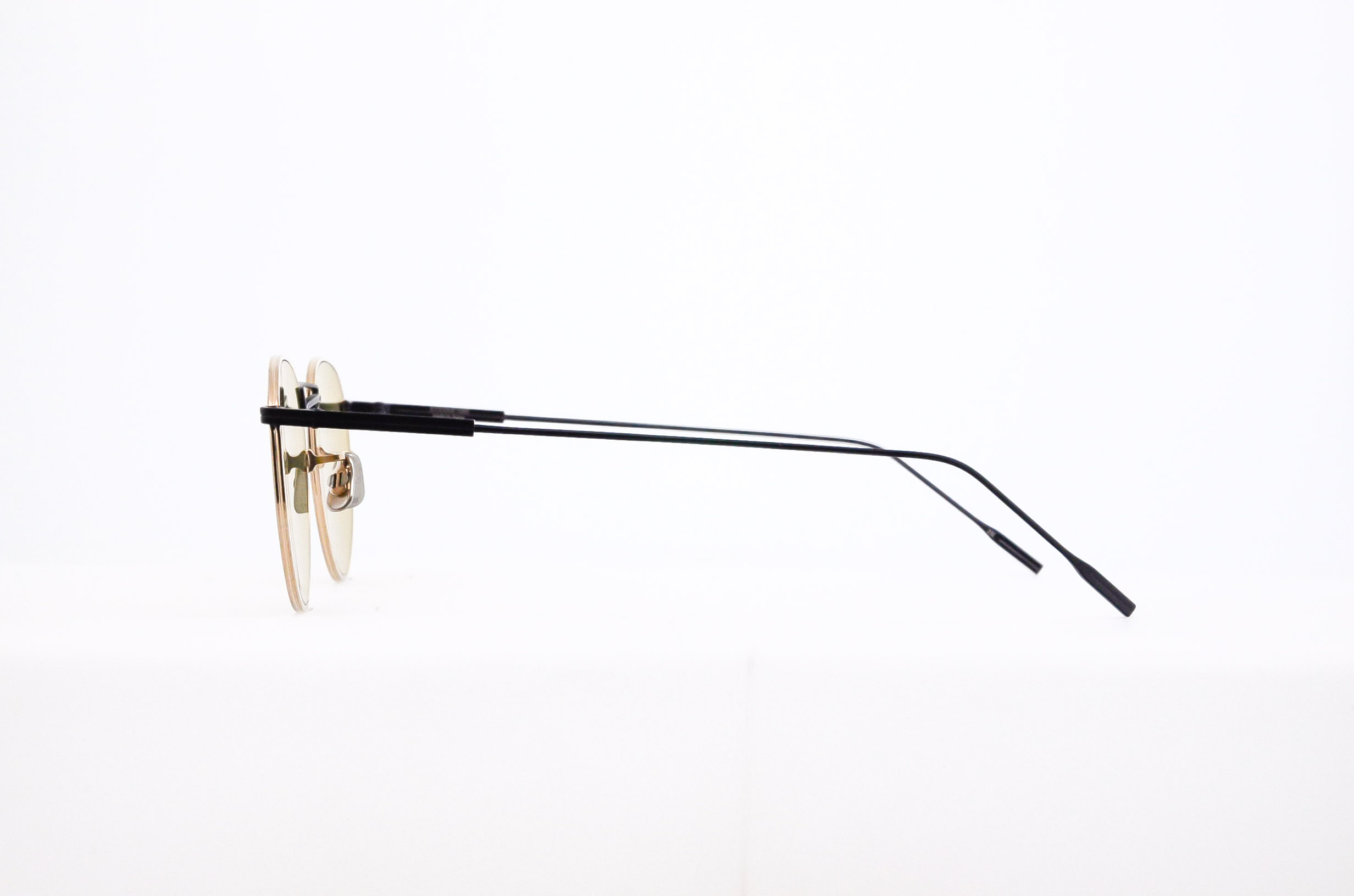 このモデルの象徴となるブリッジパーツは高速道路のジャンクションからインスパイアされた“曲線の交差”をテーマとしたもの。前後それぞれ逆方向に張り出した上部ブリッジと下部ブリッジはワンピースで構成され、その製造難易度はブランド史上最も高いレベルを要した。精密で構築的なそれぞれのパーツが持つ緊張感に対し、やや大振りでリラックスした印象の玉型を合わせプロダクト全体の空気感を和らげた。サングラスレンズは色味の調合を金属の粒子などを混ぜ合わせて調色し、溶解後に一枚ずつ成形して製作する日本製ガラスレンズのオリジナル“アイヴァンカーブレンズ”を採用。