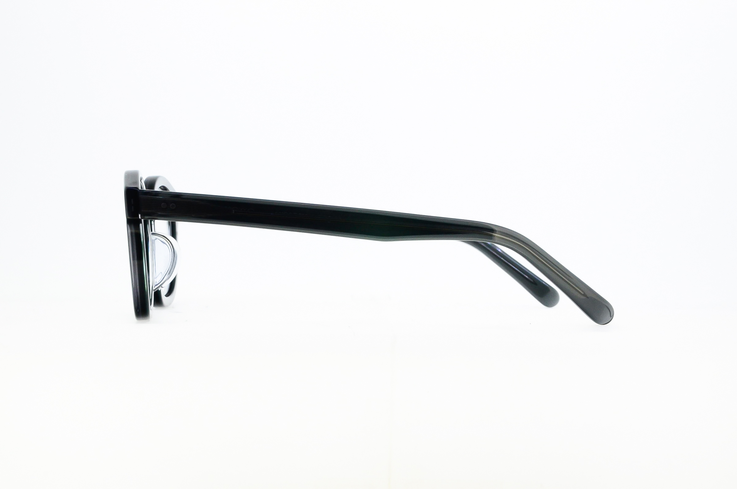 サプールのルーツとされる社会活動家アンドレ・マツワをイメージし、憧れのパリを想像していたであろうという視点から、王道のパリジャンスタイルを表現。アッパーブリッジと、顔馴染み良く見せるように位置づけられた丸みのあるブローラインを加えたことで、当時の野暮ったさを残した膨らみあるアンダーラインも現代ではどこか愛嬌のある仕上がりに。