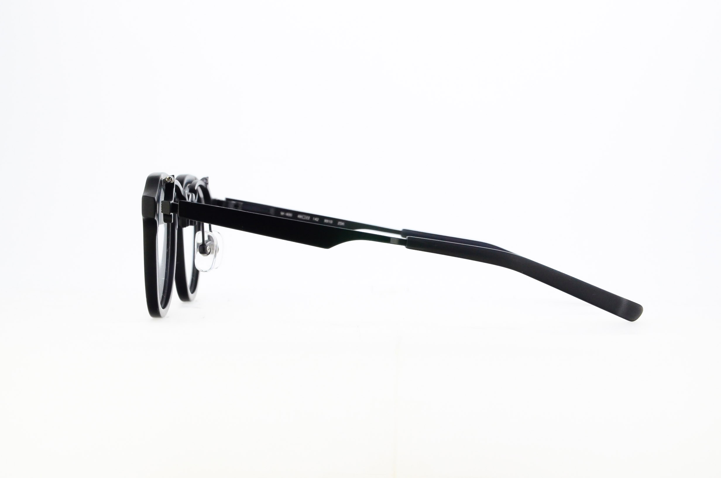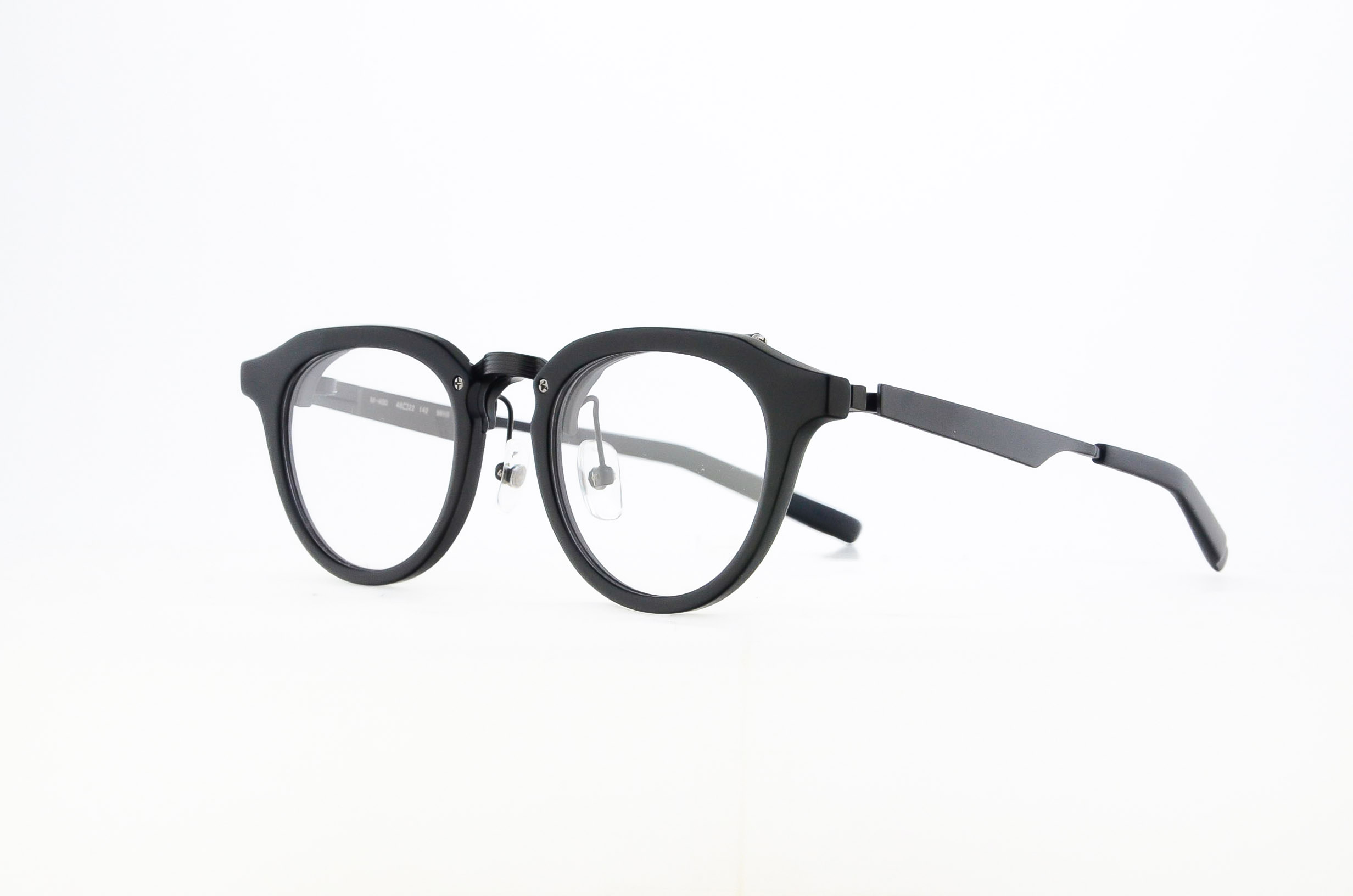 M-400は跳ね上げのミックススタイル。柔らかな雰囲気を醸し出すプラスチックリムに、上質さを添えるメタルブリッジを組み合わせたデザイン。異なる素材が織りなす美しいバランスが、洗練された印象と際立つ個性を引き立てます。