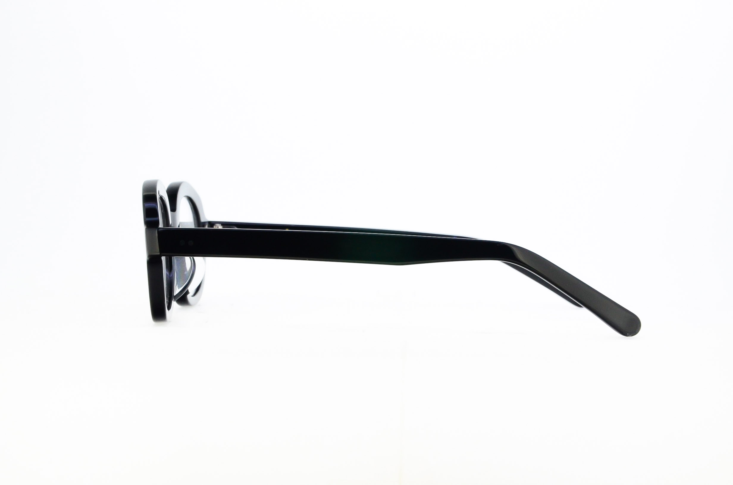 フレーム上部は厚みを持たせ丸みを減らした一方、下部では緩やかなカーブを採用することで、当時のロック音楽のインパクトと歌詞に秘められた繊細なテーマをデザインに落とし込みました。リムの内側はレンズに向かってカッティングを施すことでリムラインとのコントラストが生まれ、ベーシックな雰囲気のスクエアをカリズマティックなフレームへとチェンジさせました。