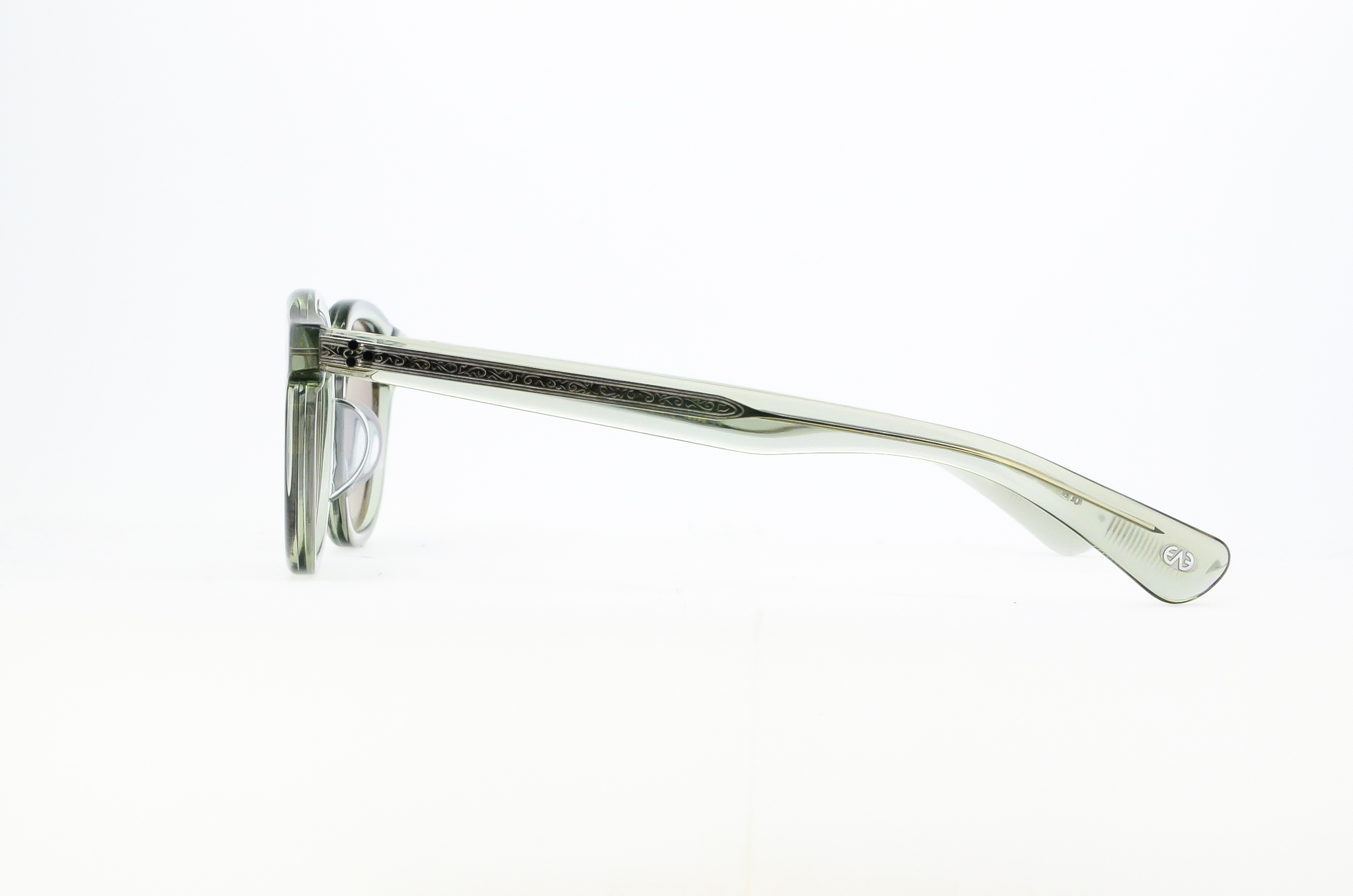 デザインチームが影響を受けたビートジェネレーションの代表格、アレン・ギンズバーグが写った60年代の1枚の写真がインスピレーションソースとなったモデル。ホーンリムスタイルはそのままに、フロントを丁番をかしめ丁番に変更し、直径1.8mmのかしめPINを採用した。フロントには6mm生地を使用しながらヨロイ裏にはビルドアップした構造を採用した。細かいディテールの掛けあわせによって、荒々しさと繊細さを表現したまさにアレン・ギンズバーグの詩のようなフレームに仕上がった。サングラスレンズはオリジナルのCR39 4カーブレンズを採用。