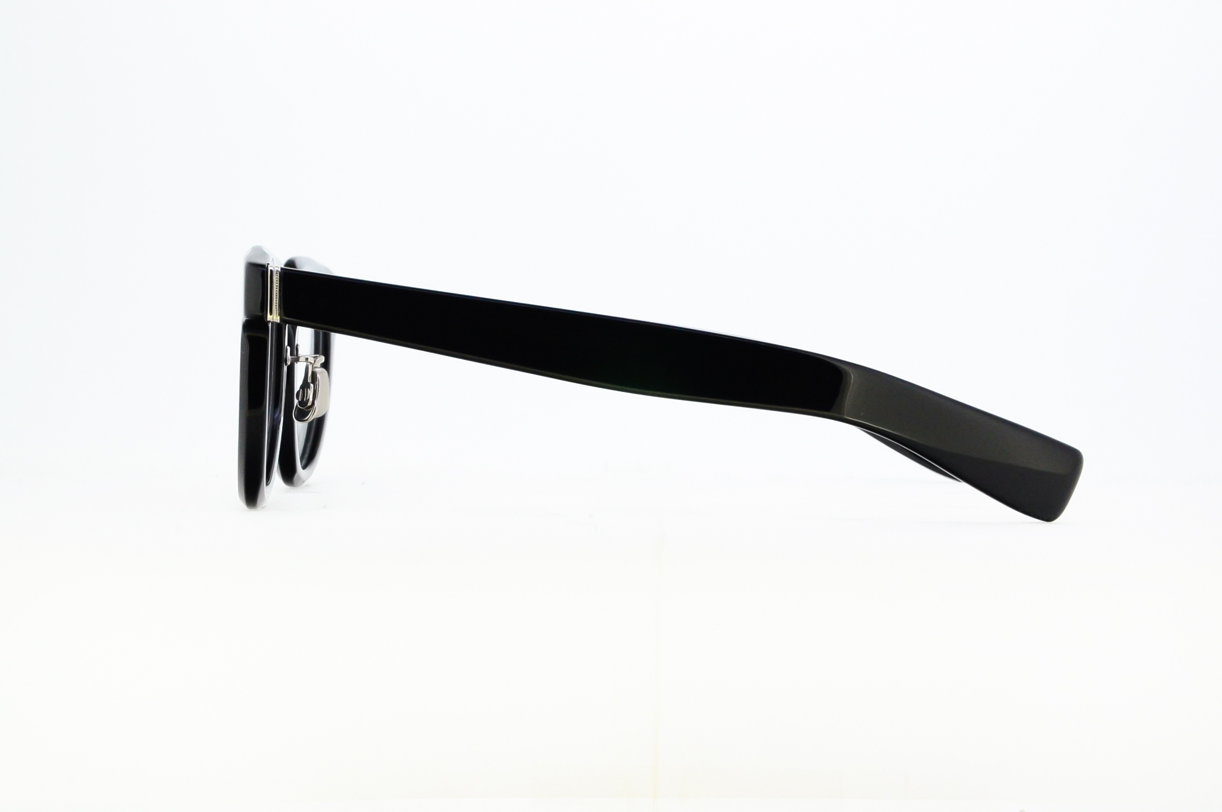 1935年に発行されたアメリカのヒストリカルな眼鏡メーカーのカタログからサンプリングした玉型を軸としたモデル。フレームデザインに落とし込むのに数シーズンの時間を費やしたこの玉型は、一見すると左右の判別も難しい極めて特徴的なもの。フロントとテンプルには離れた間隔の2PINカシメによるミリタリー丁番を配した。この丁番と内側の平座金は本モデルのために新たに作製されたパーツ。ディテールやアイデアはクラシックな趣向だが、全体像はあくまで今の空気感を感じさせるデザイン。