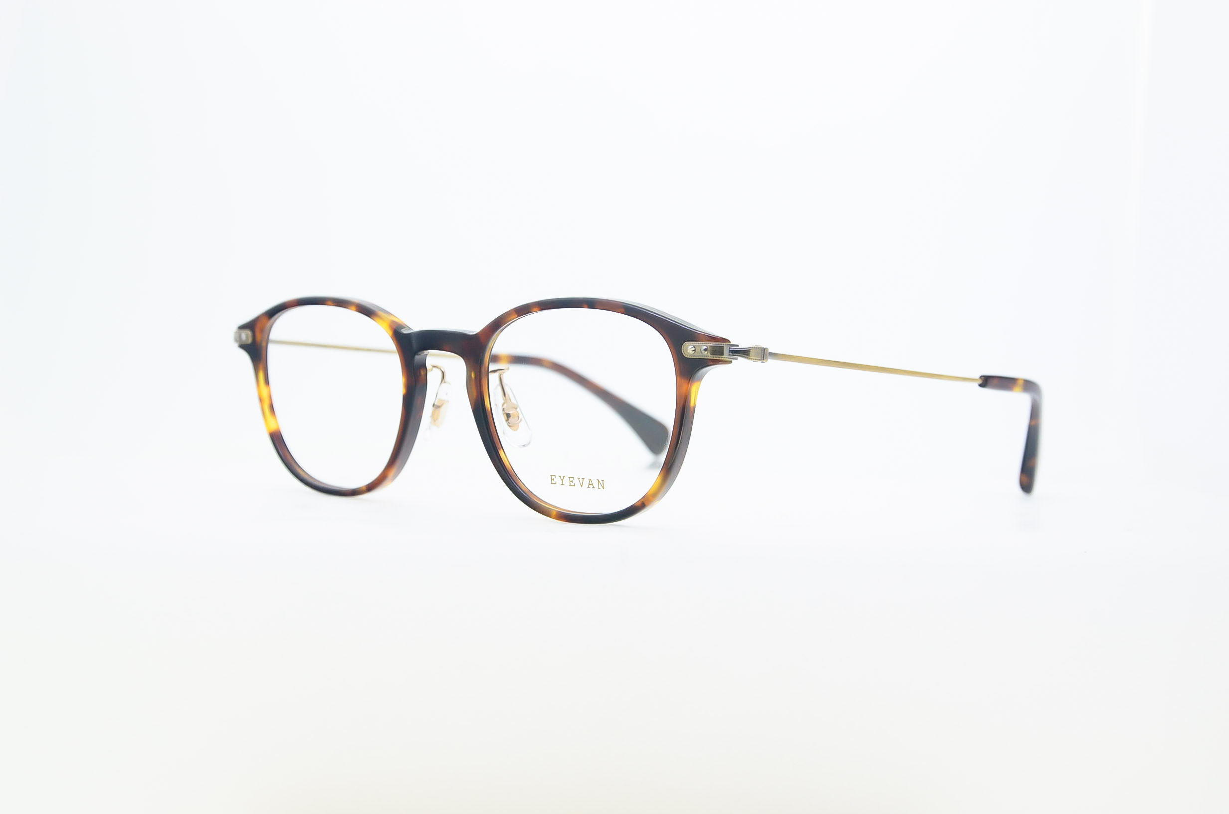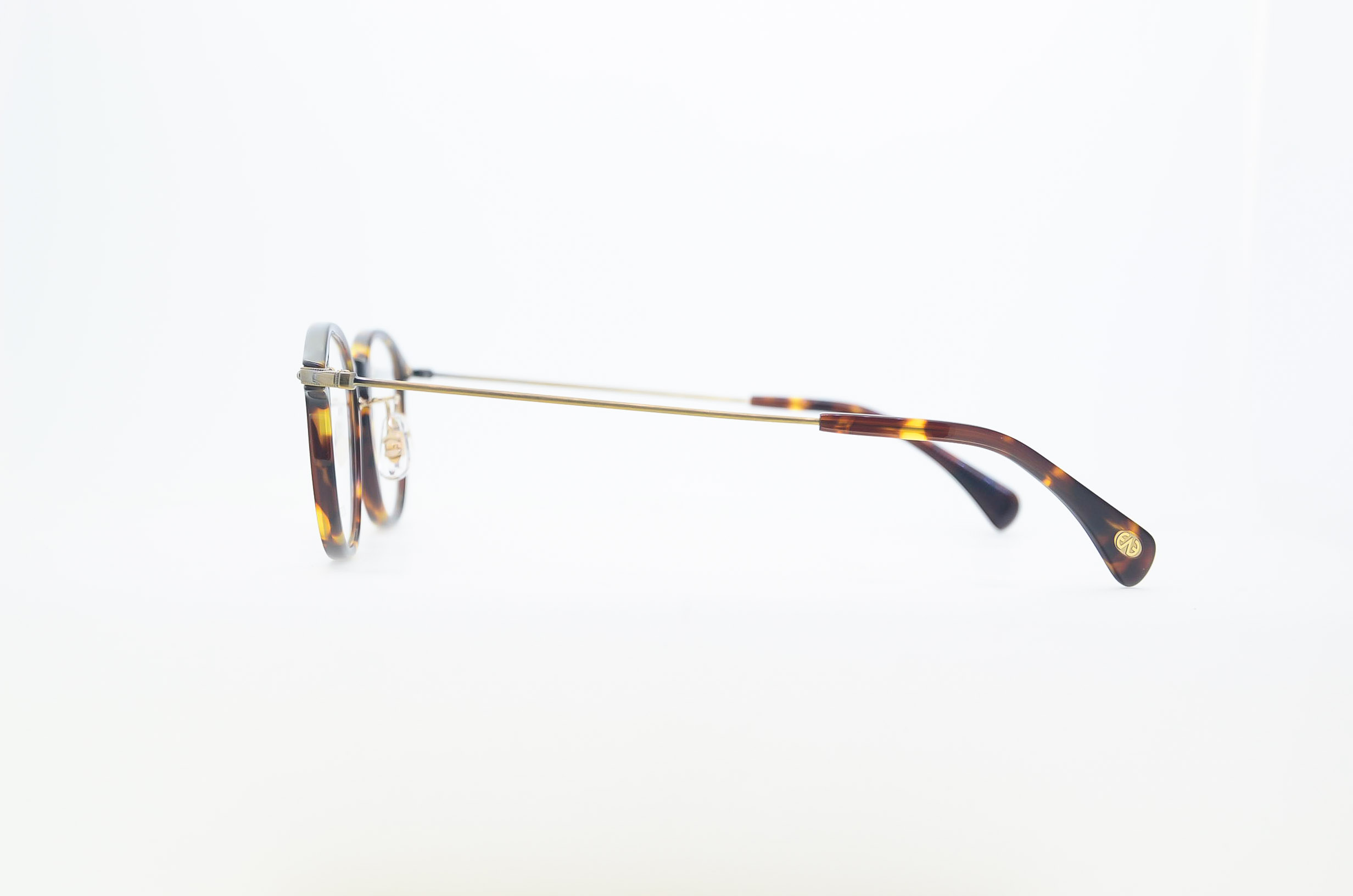 やや丸みの強いウェリントン型のフロントと、モダンな彫金彫りが施されているβチタンのテンプルの『Danny』 は、老若男女や公私を問わずデイリーに使いやすいデザインが魅力でした。22SSの新作『Danny-R』ではフロントの魅力はそのままに、テンプルの金型をスリムでシンプルなものに替え、テンプルエンドには掛け心地をが向上するよう、先セルモダンパーツをつけました。