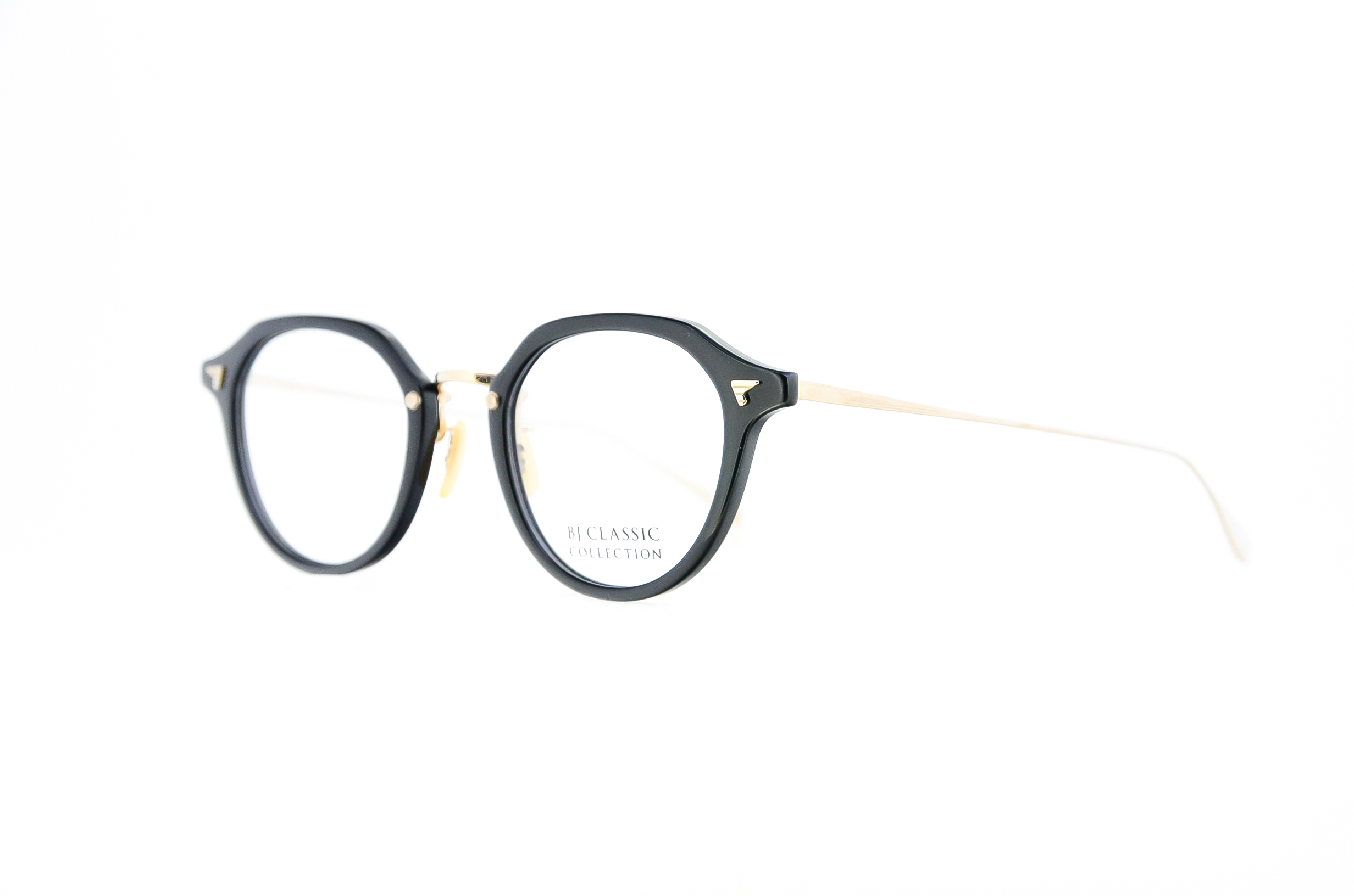 METAL(メタル)と、PLASTIC(プラ)を融合させたコンビネーションタイプのクラシック眼鏡です。中でもフロントがプラで、テンプルとブリッジがメタルタイプは、BJ CLASSIC COLLECTIONの代表作となりました。「Titanium(チタン)」は、金属アレルギーやサビが出にくく、軽くしなやかなバネ性と強度を保ち、柔軟なフィッティング調整が可能な素材です。