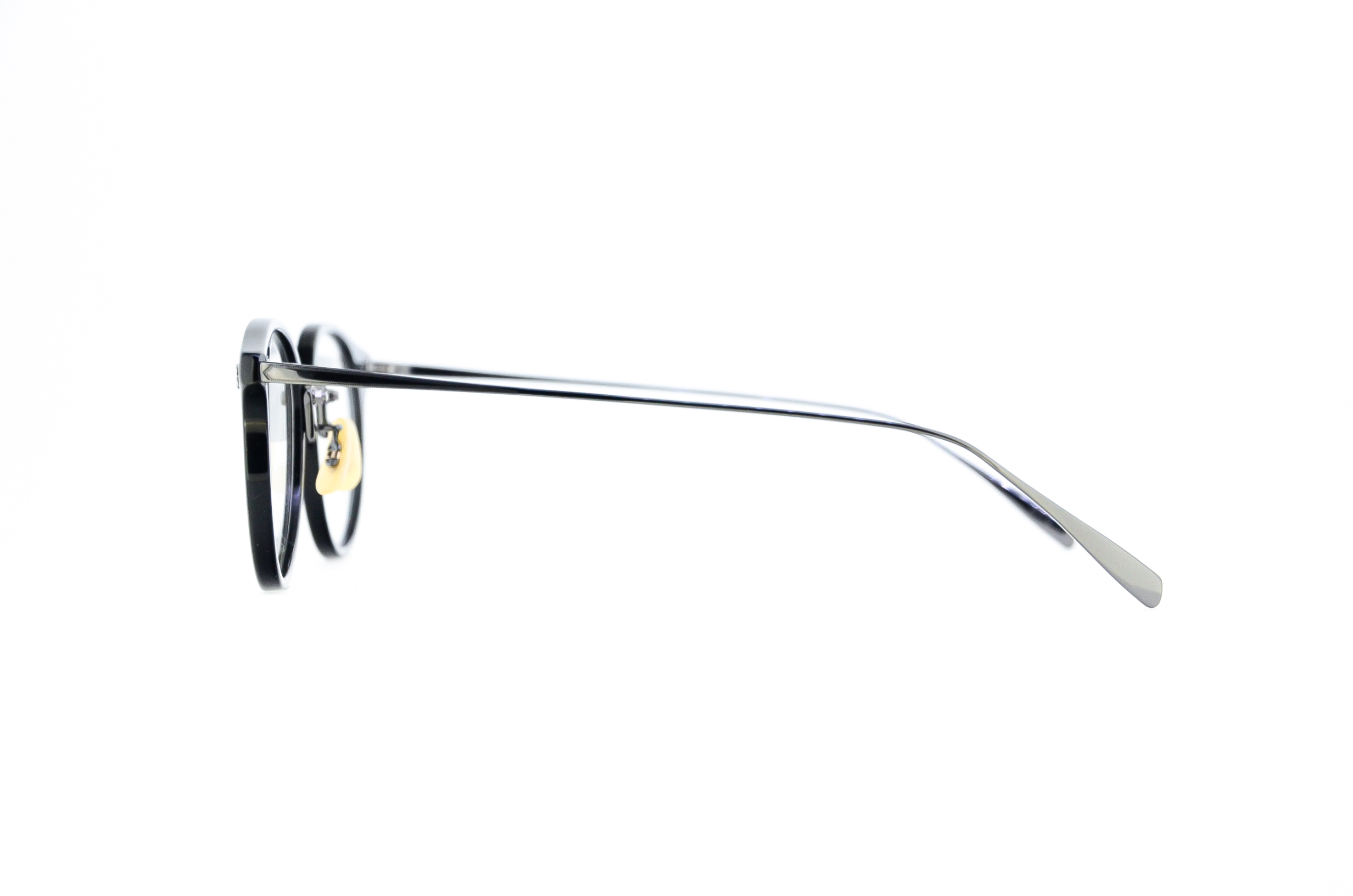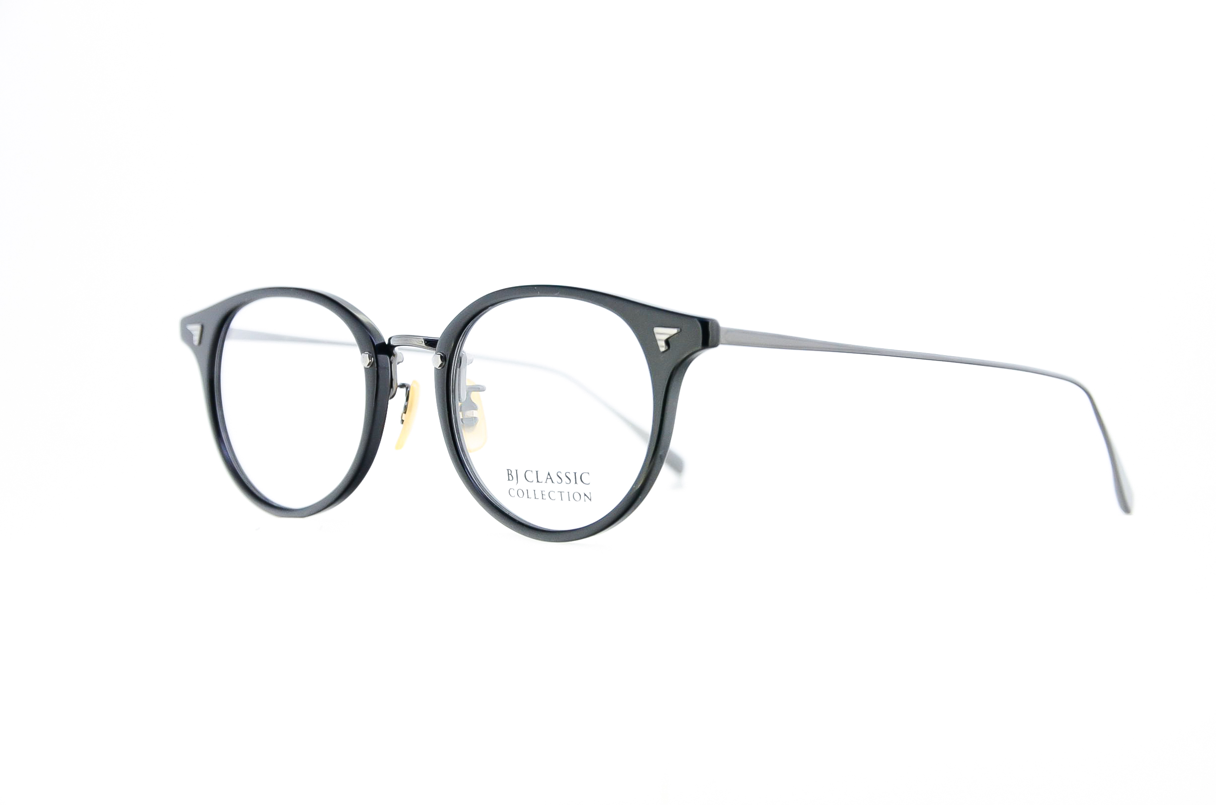 METAL(メタル)と、PLASTIC(プラ)を融合させたコンビネーションタイプのクラシック眼鏡です。中でもフロントがプラで、テンプルとブリッジがメタルタイプは、BJ CLASSIC COLLECTIONの代表作となりました。「Titanium(チタン)」は、金属アレルギーやサビが出にくく、軽くしなやかなバネ性と強度を保ち、柔軟なフィッティング調整が可能な素材です。