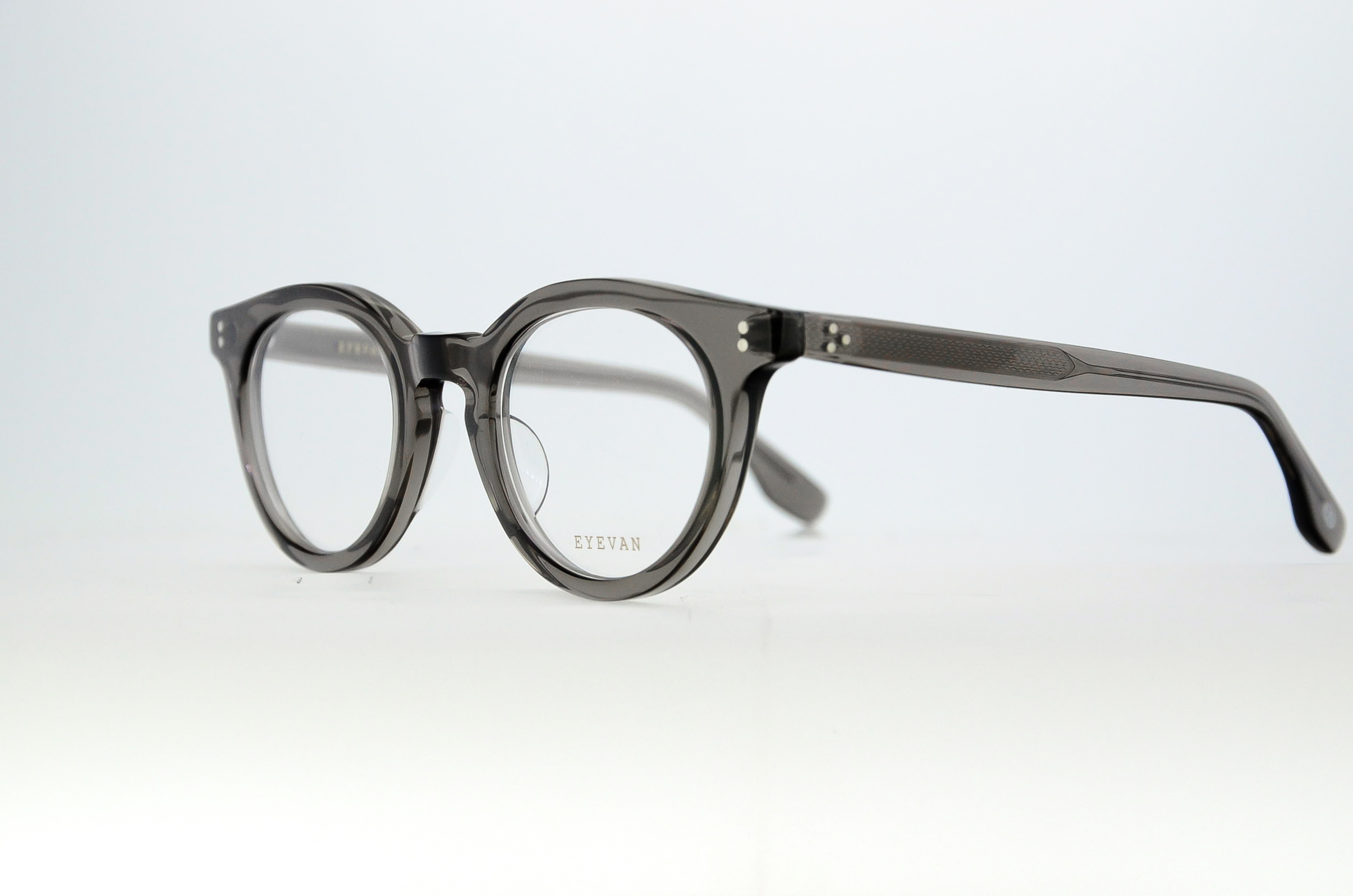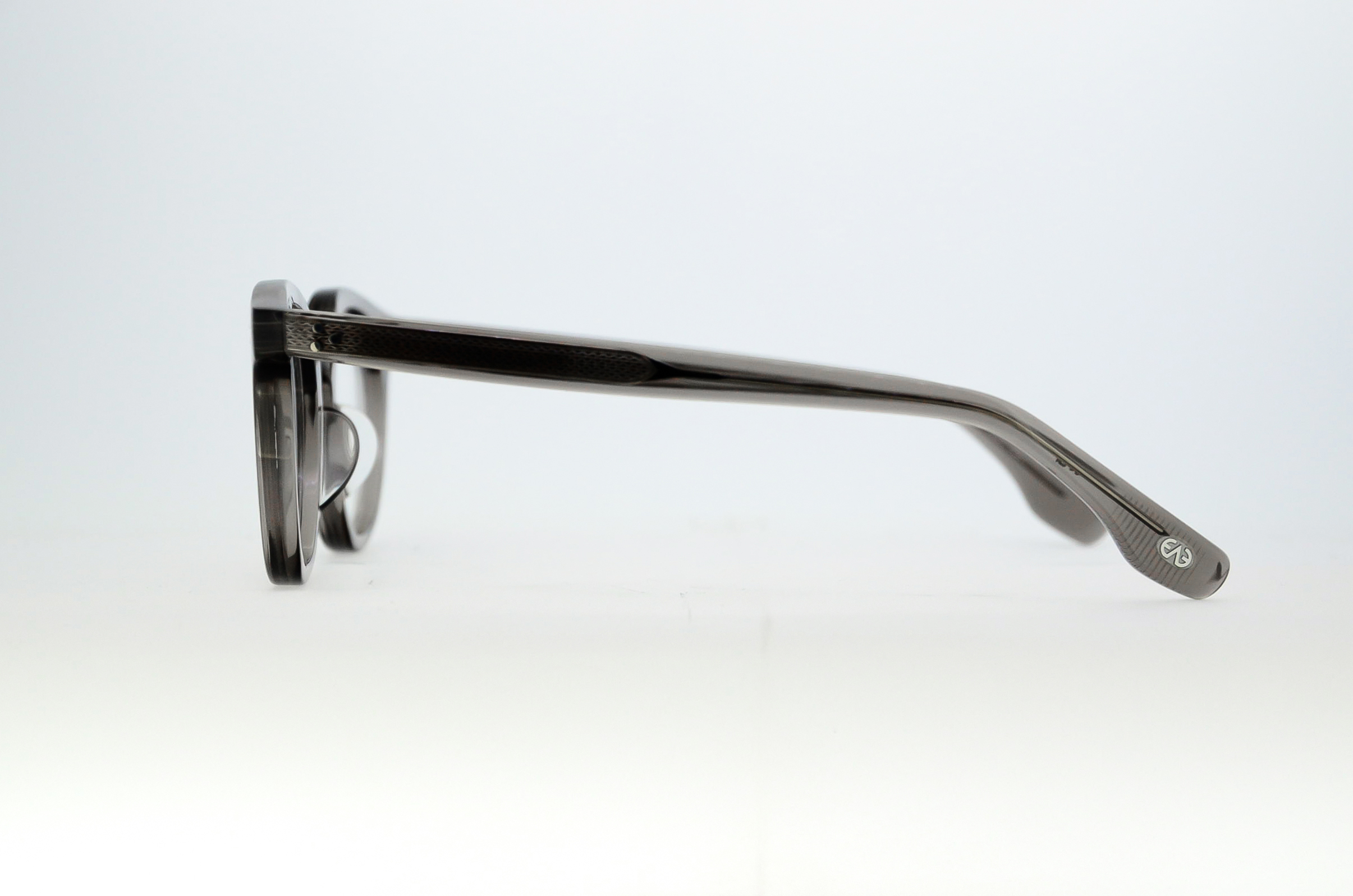 2000年代のアーカイブを着想源に、ポストンシェイプとミドルブリッジのオーバルシェイプをMIXしたフロントデザインが特徴的なモデル。この一見アンバランスなフロントに、1960年代のフレンチヴィンテージからサンプリングしたユニークなしのみ形状のテンプルを合わせ新しいデザインヘ再構築した。