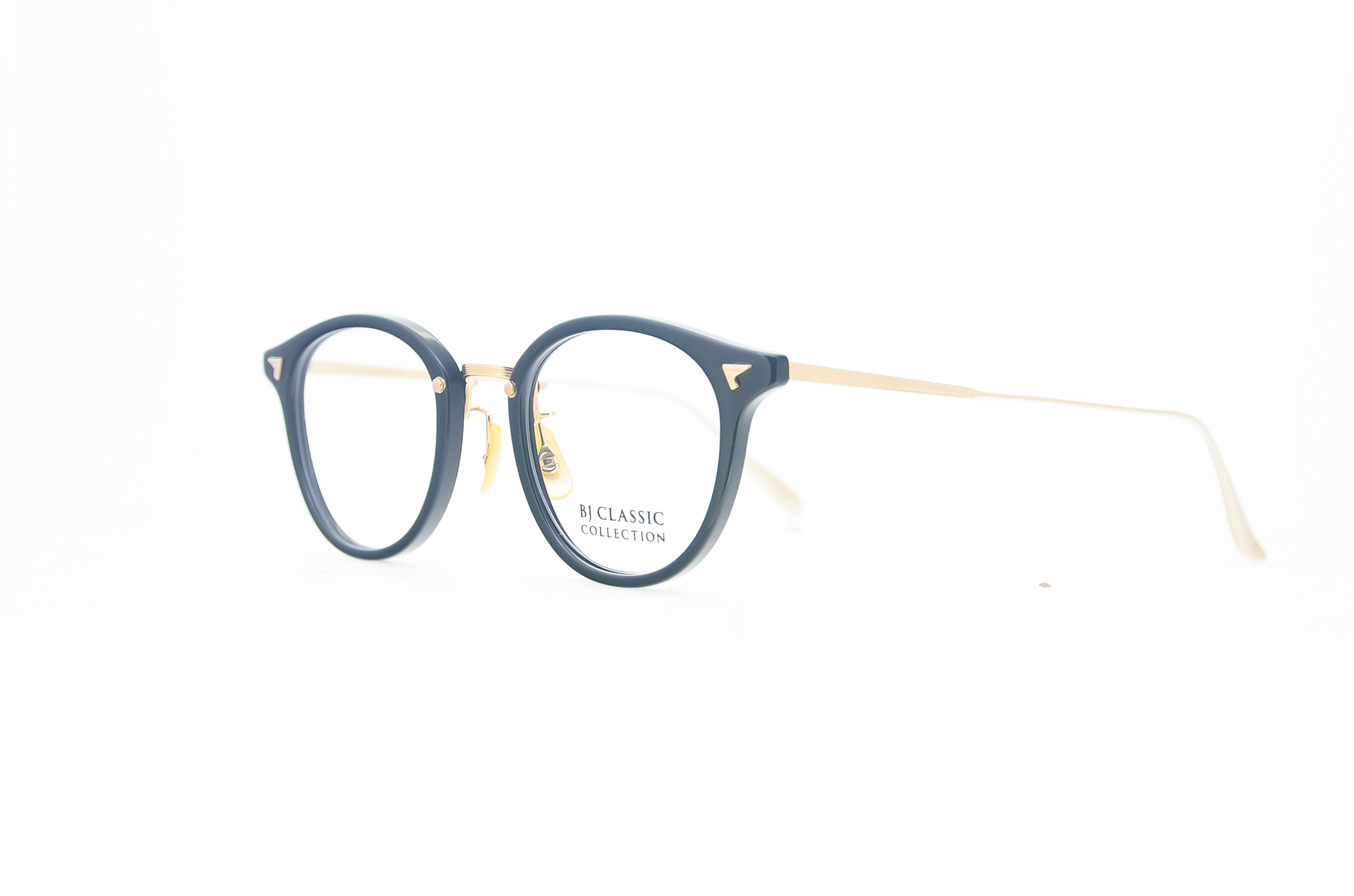 METAL(メタル)と、PLASTIC(プラ)を融合させたコンビネーションタイプのクラシック眼鏡です。中でもフロントがプラで、テンプルとブリッジがメタルタイプは、BJ CLASSIC COLLECTIONの代表作となりました。「Titanium(チタン)」は、金属アレルギーやサビが出にくく、軽くしなやかなバネ性と強度を保ち、柔軟なフィッティング調整が可能な素材です。