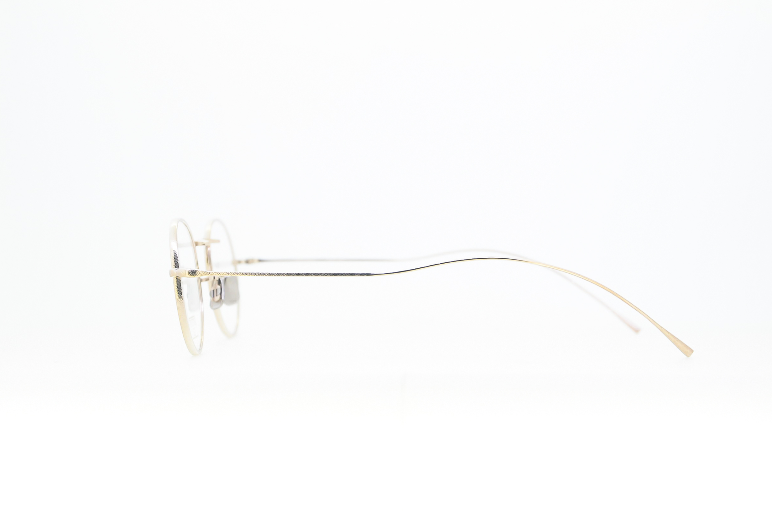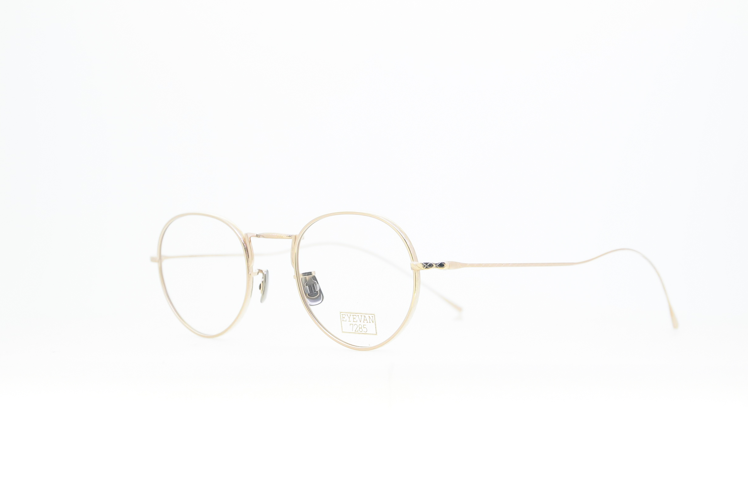 リム下側に設置した智と側頭部へ向かい徐々に位置が高くなるテンプルとのコンビネーションは2023SSモデル[347]の系譜を組んだデザイン。各パーツにはEYEVAN 7285のアイコンであるVAN柄を施した。フレンチとブリティッシュのイメージを組み合わせたセルフレームの代表的モデル[338]のレンズシェイプ、70年代のラグジュアリーブランドからサンプリングしたアンダーテンプルなど、様々な要素を複合しながら全体像はあくまでヴィンテージを想起させるデザインに。