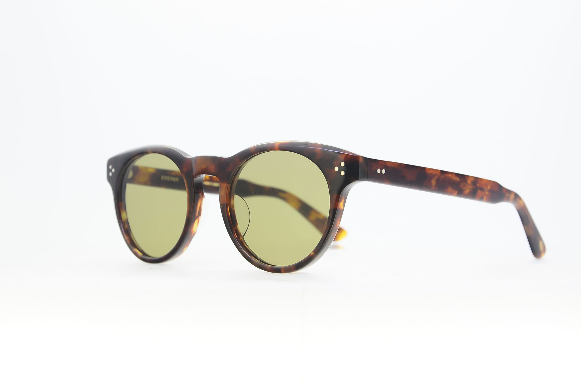 Le Corbusierが掛けていた50年代初期にハンドメイドで作られたフレンチパント型のヴィンテージフレームが着想源のモデル。フロントに6mm厚の生地を使い、熟練の職人による手磨きによって表現された美しい曲面と立体的なフォルムが特徴。ブリッジ、ヨロイ、テンプルにはアメリカンヴィンテージからインスパイアされたデザインを融合し、過去には存在しえないEYEVANらしいオリジナルのプロダクトとなった。レンズはオリジナルのCR39 2カーブレンズを採用。