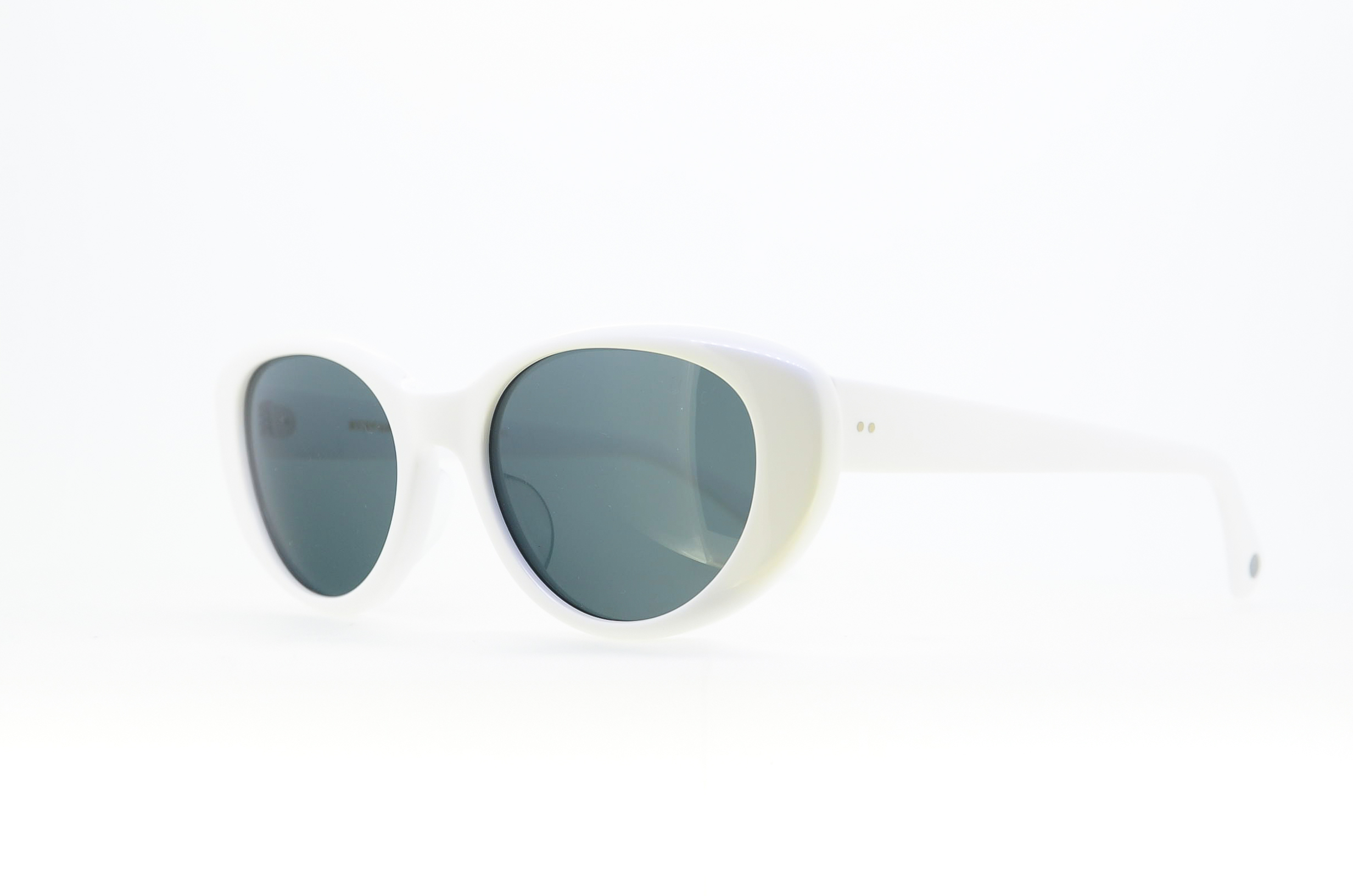 丸みを帯びた曲線が美しい、オーバルシェイプの60年代フレンチヴィンテージからインスパイアされたモデル。フロントリム上下にベベルカットを施し、オーバーサイズなサングラスに仕上げた。オフセットと呼ばれる特徴的なテンプルの配置、6カーブフロントなどヴィンテージの持つディテールをふんだんに盛り込みながらEYEVANらしいデザインのサングラスとなった。レンズはオリジナルのCR39 6カーブレンズを採用。