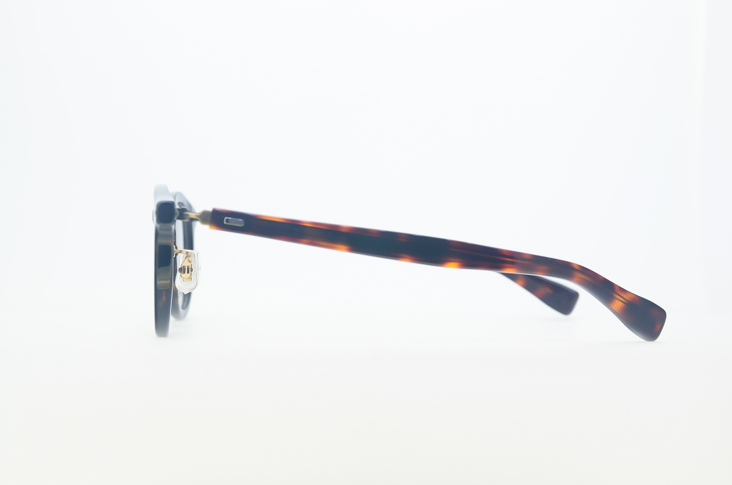 フロントは高密度で変形が少なく、人体からの影響、経年変化がしにくい特殊なプラスチックであるHighcount acetateを使用。L字型の特殊な形状を有したテンプルは掛け心地の良さとオプティシャンによる調整のしやすさという目的を追求した結果、生まれた形状。CPとシリコンで成形したグリップ性のあるモダンのエンドにはスウェーデン語で重い石という意味である非常に大きな比重があるタングステン製のエンドチップを組み合わせ前方部及び鼻梁部に掛かる重量を軽減させた。掛け心地が良く、軽く、適正な強度があるという理想的なプロダクトを追求した。
