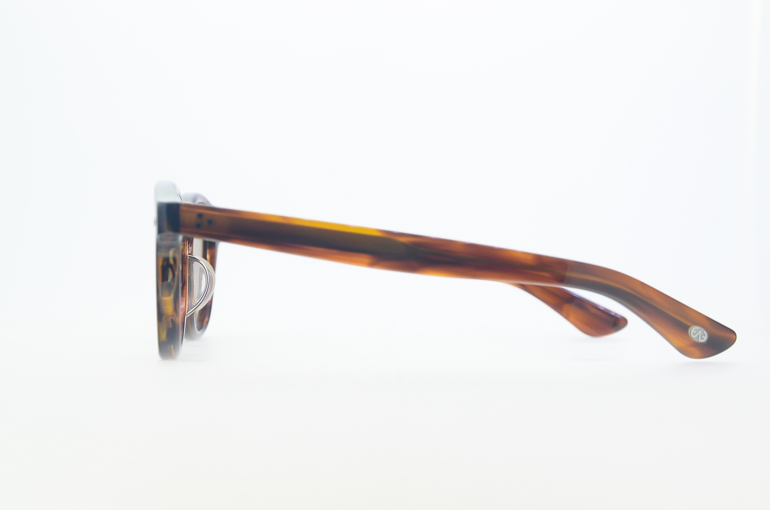 ジェームス・ディーンのミドルネームから名付けられたこのモデルは、彼が映画のオフショットでデニス・ホッパーと共に写る写真の中で掛けていたフレームからインスパイアされたモデルです。その伝説的なフレームに、90年代フレームが持つモードな雰囲気のテンプルデザインをインサイドに表現し組みあわせたものとなっております。
