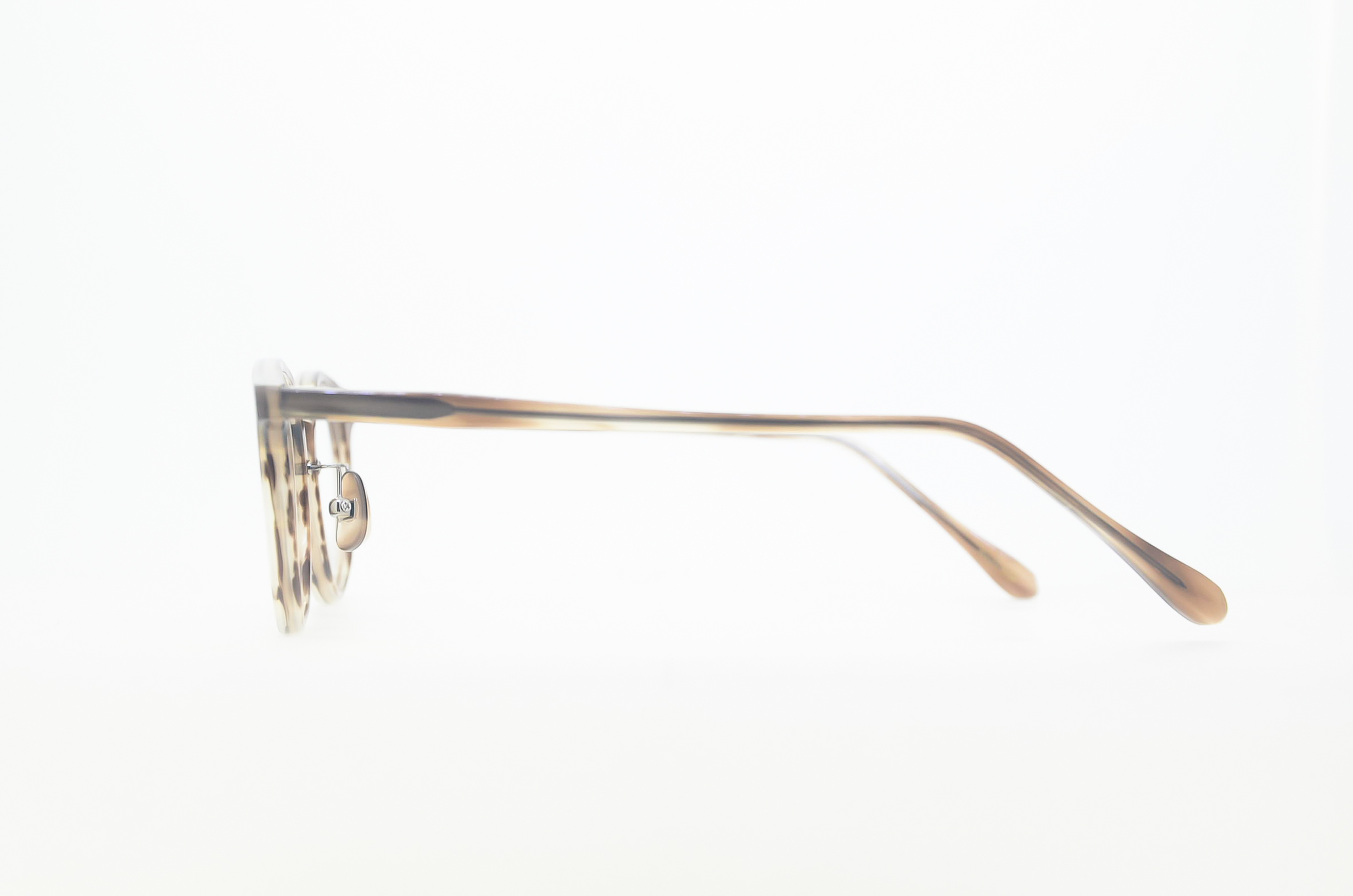 あどけない雰囲気の中にも華やかさを含むマリーゴールドの花をイメージしてデザインした、小さめサイズのボストンシェイプ。智を高めにすることで可愛らしさを強調。鼻パットのカラーもフレーム色と統一。花言葉:真心