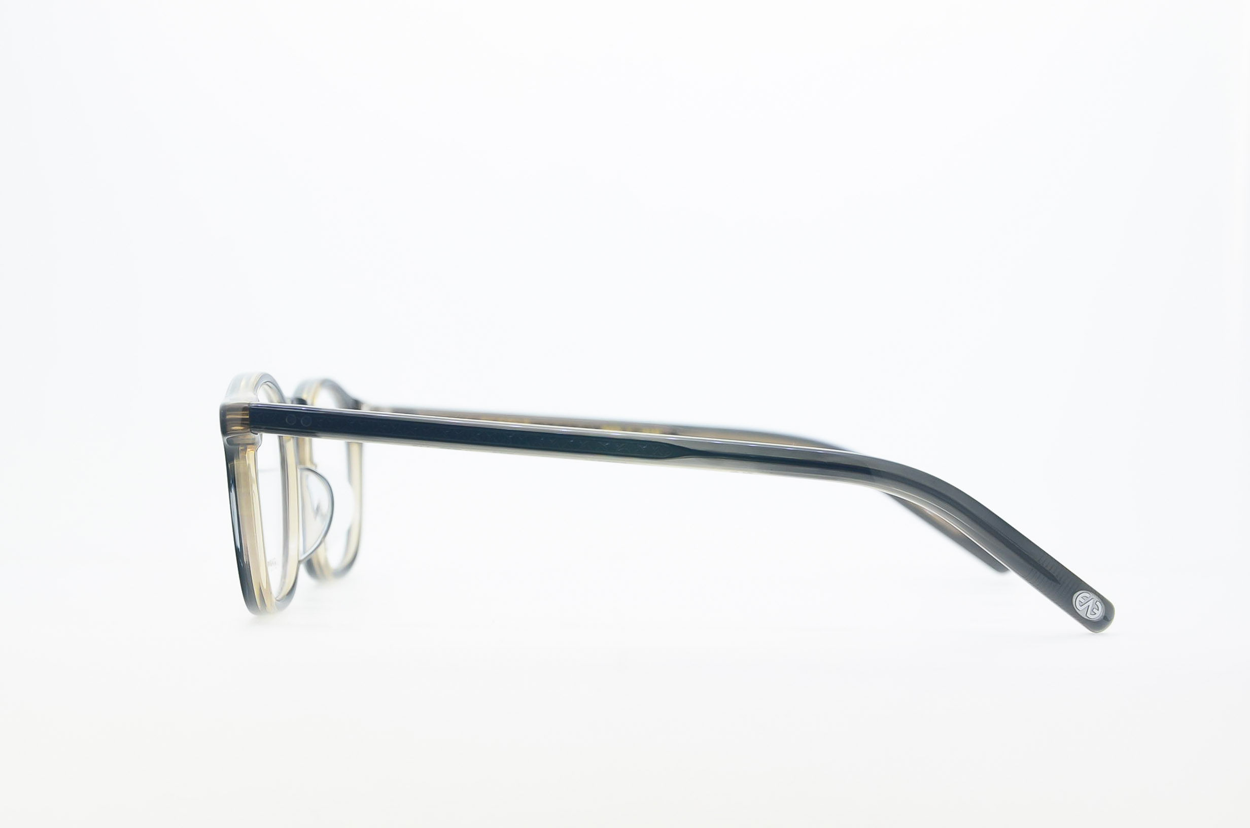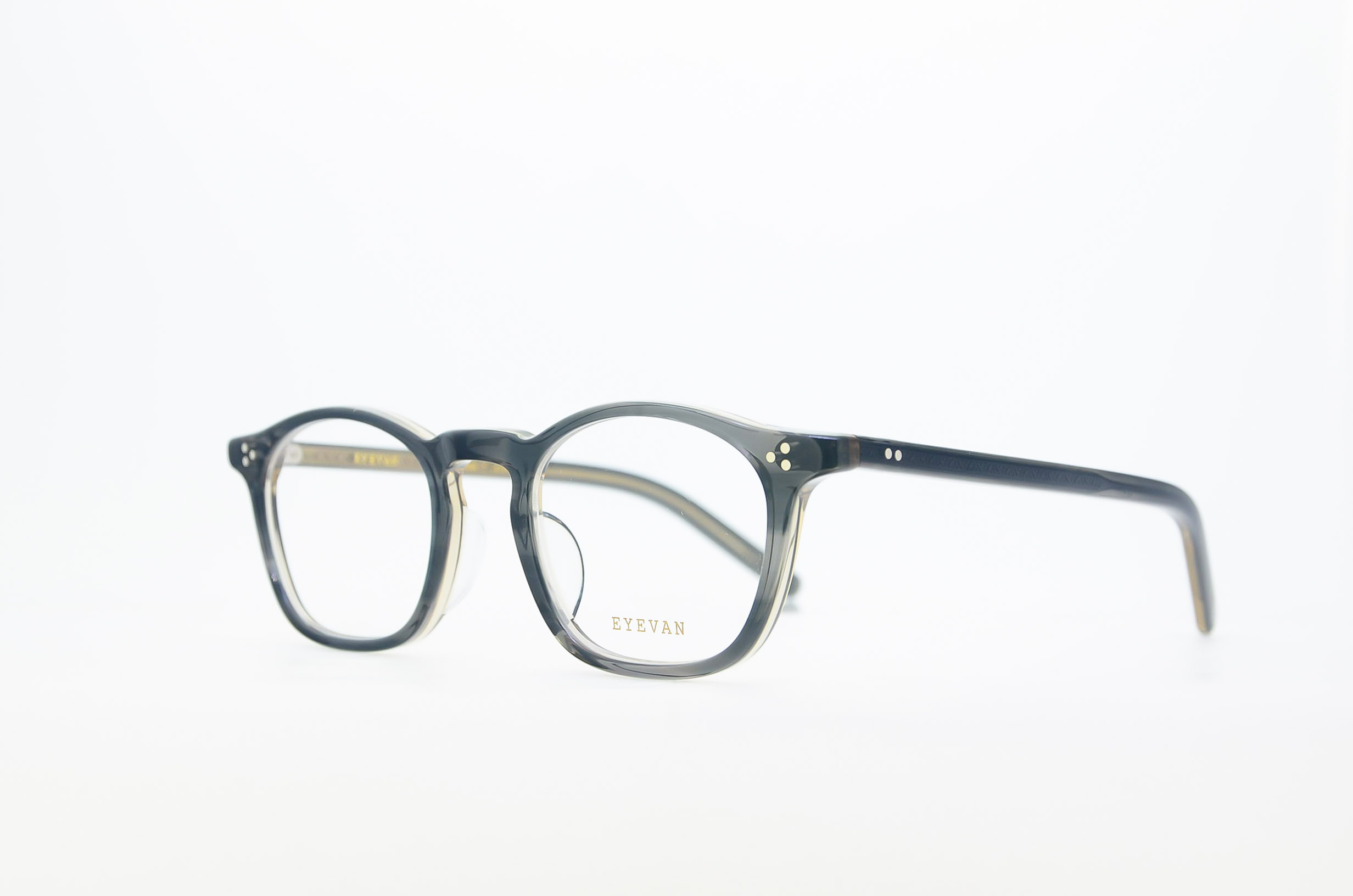 2021SSでリリースされた「Sadler」のリムを華奢にリデザインしたモデル。フロントデザインは、フレンチヴィンテージの雰囲気はそのままに0.1mm単位で再度設計し、テンプルは1950年代のハンドメイドフレームをモチーフに、このモデルに合わせて一からデザインした。丁番にはデザインとしても美しい置き丁番を採用するなど、細部までEYEVANらしさを表現したモデルとなった。