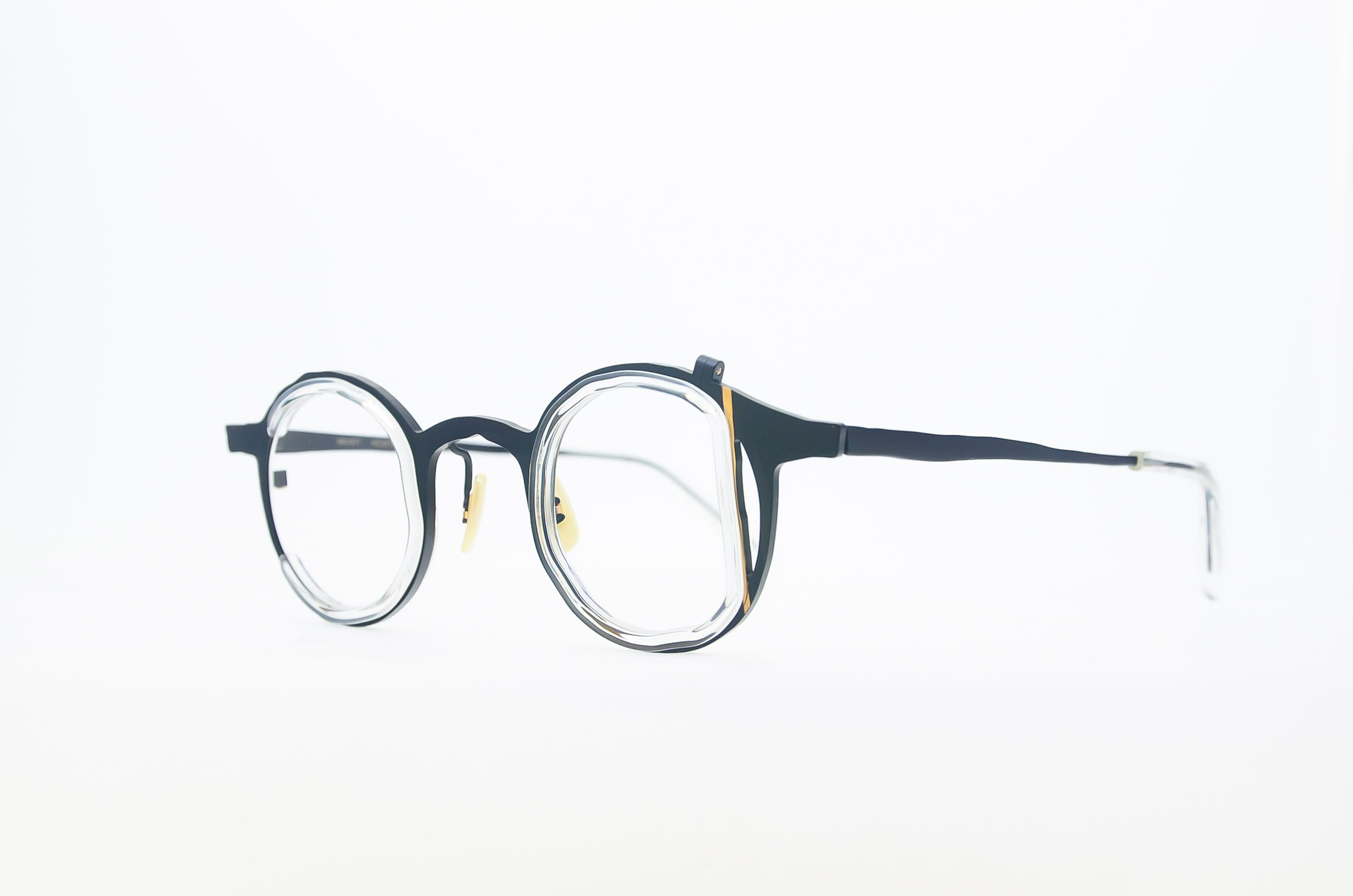 割れた陶磁器を美しく生まれ変わらせるKintsugiを眼鏡デザインに落とし込みました。Kintsugiのラインがフレームに新しい空間をもたらします。また、Kintsugiはわび・さびの精神の表れでもあります。わび・さびの見た目の美しさと、美しさを見出す心も表現しています。